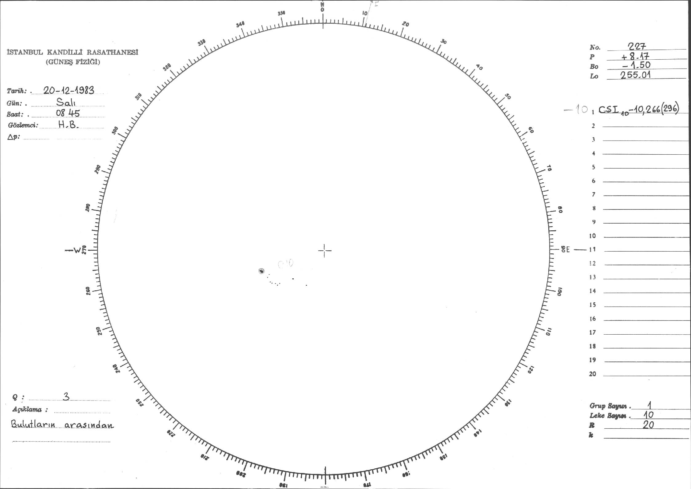 Güneş Lekesi Çizimi - 20.12.1983
