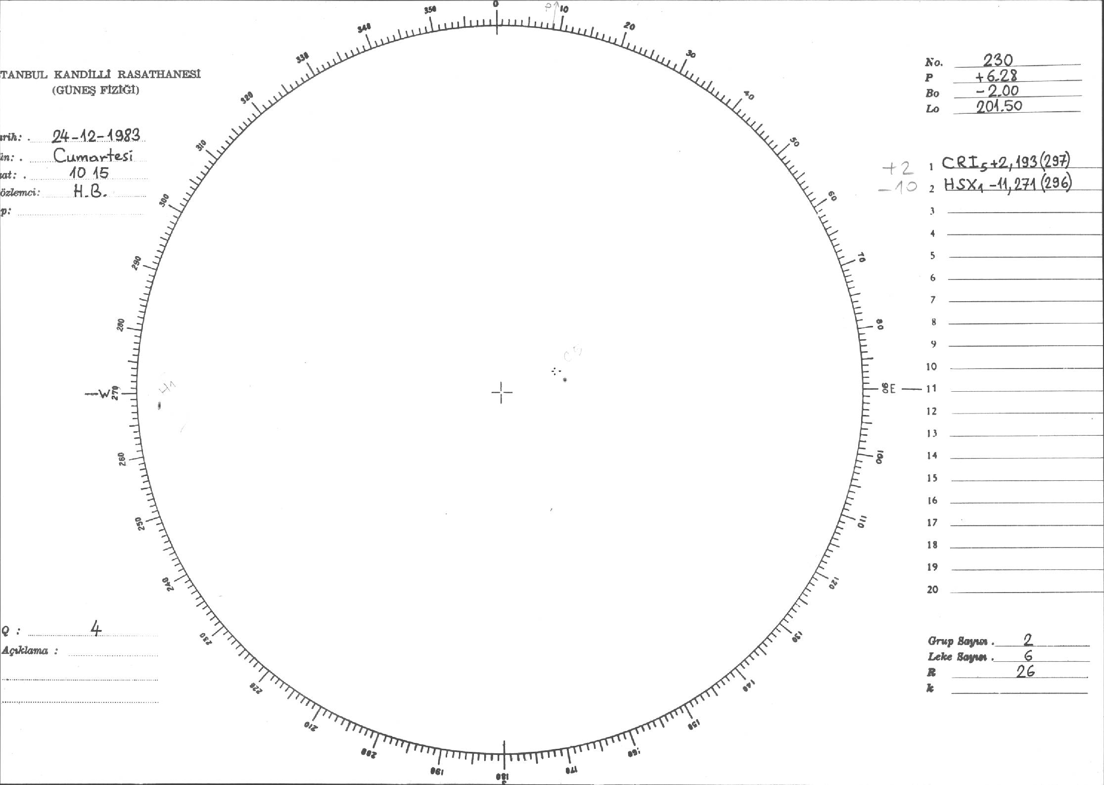 Güneş Lekesi Çizimi - 24.12.1983