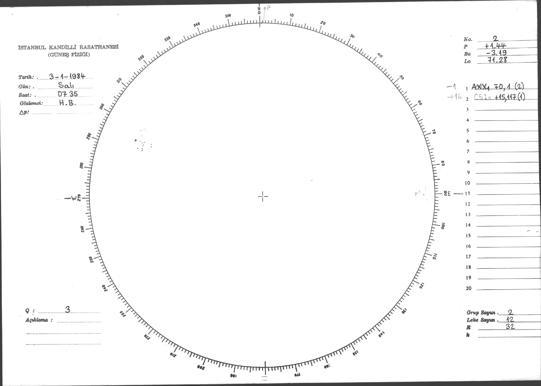 Güneş Lekesi Çizimi - 03.01.1984