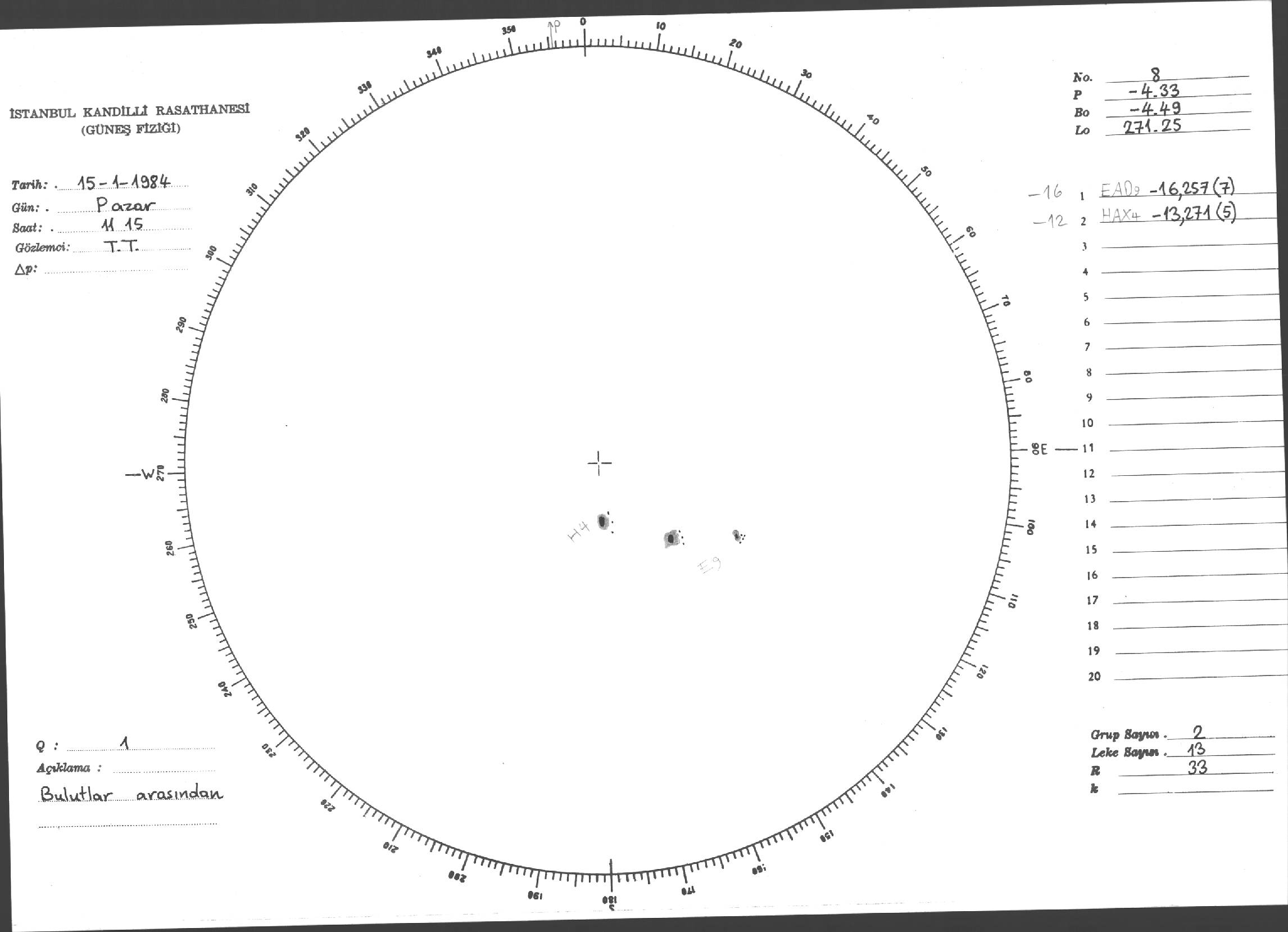 Güneş Lekesi Çizimi - 15.01.1984