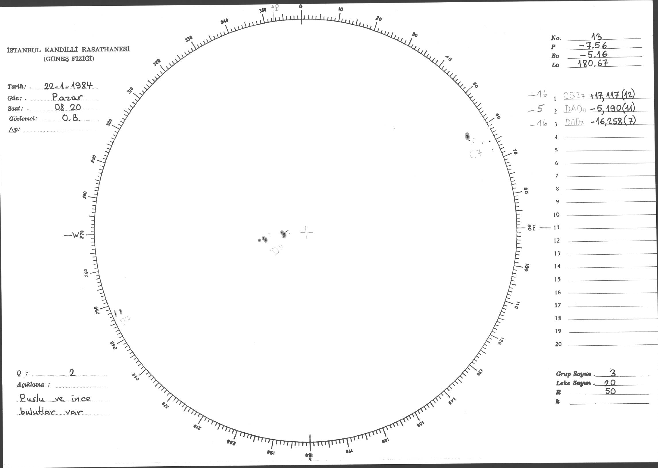 Güneş Lekesi Çizimi - 22.01.1984