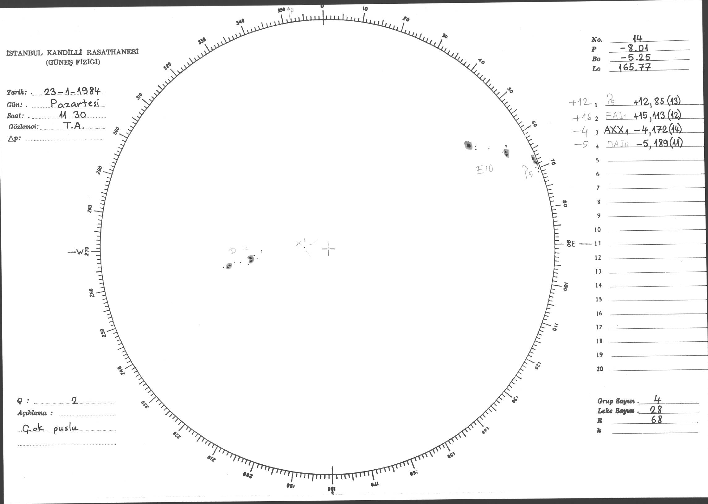 Güneş Lekesi Çizimi - 23.01.1984