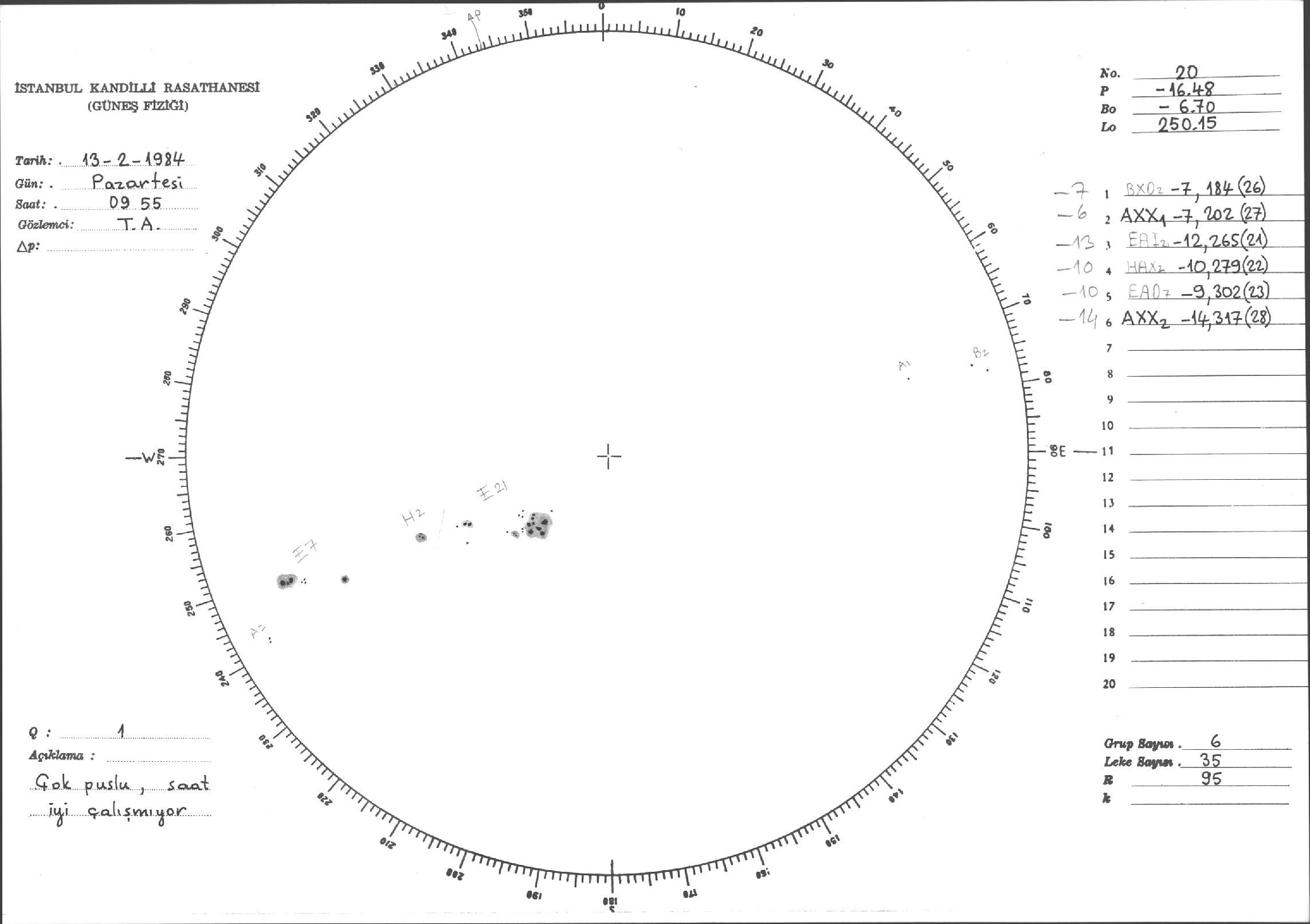 Güneş Lekesi Çizimi - 13.02.1984