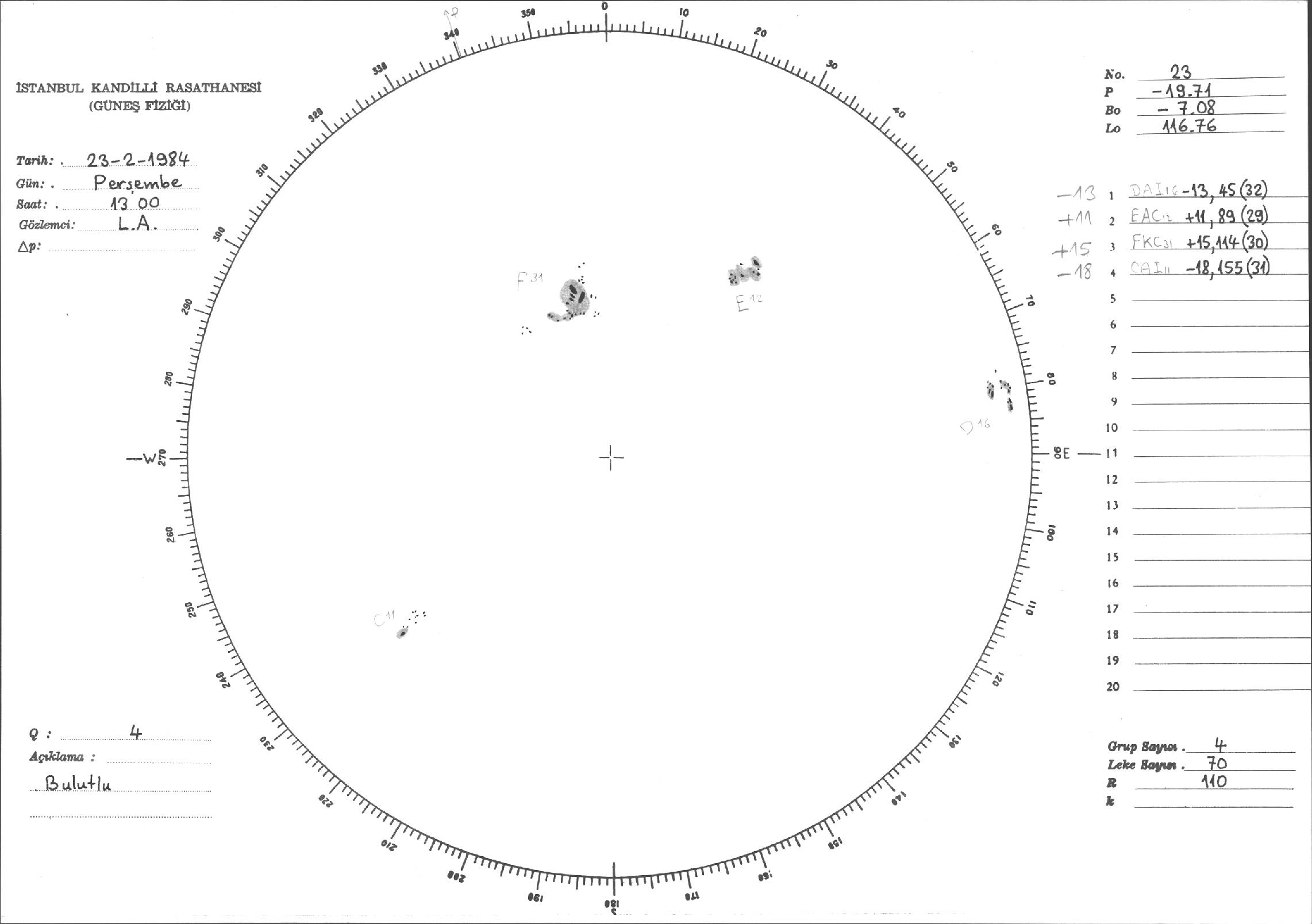 Güneş Lekesi Çizimi - 23.02.1984