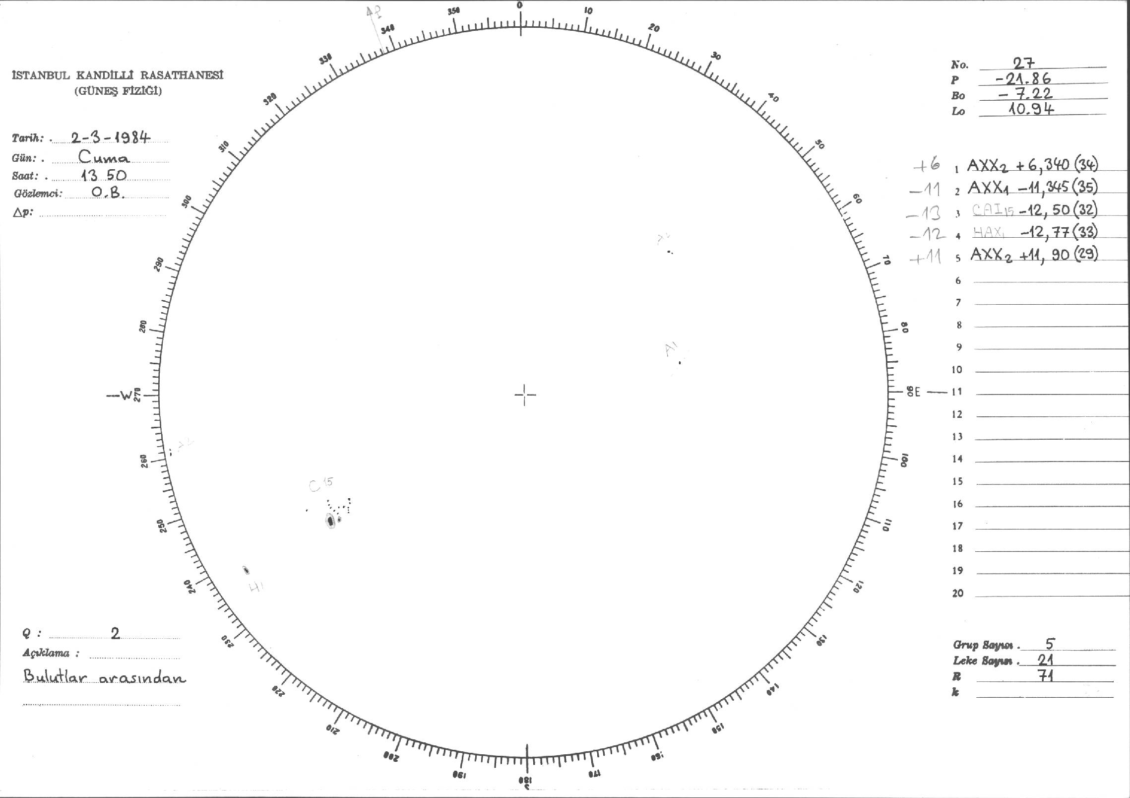 Güneş Lekesi Çizimi - 02.03.1984