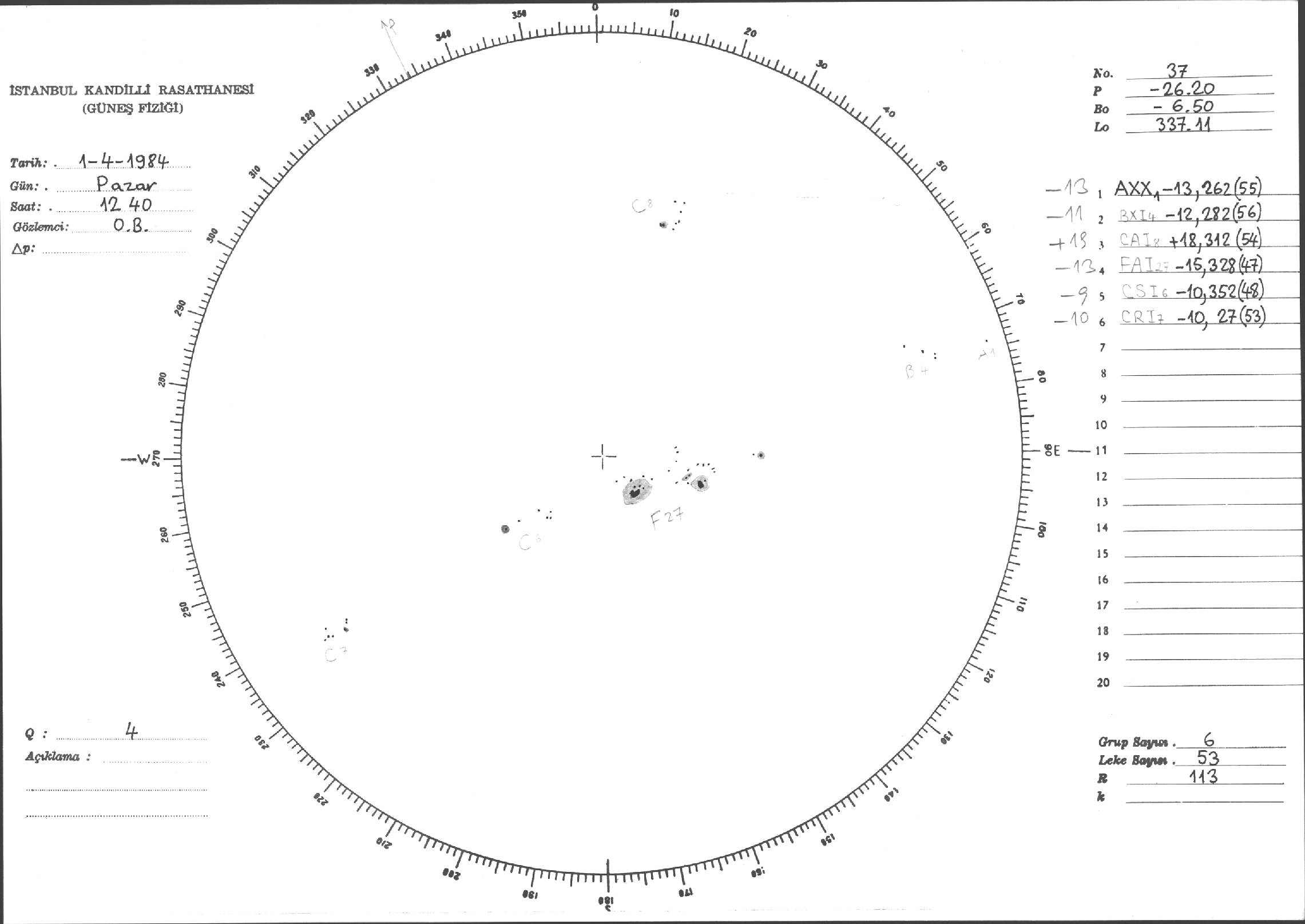 Güneş Lekesi Çizimi - 01.04.1984