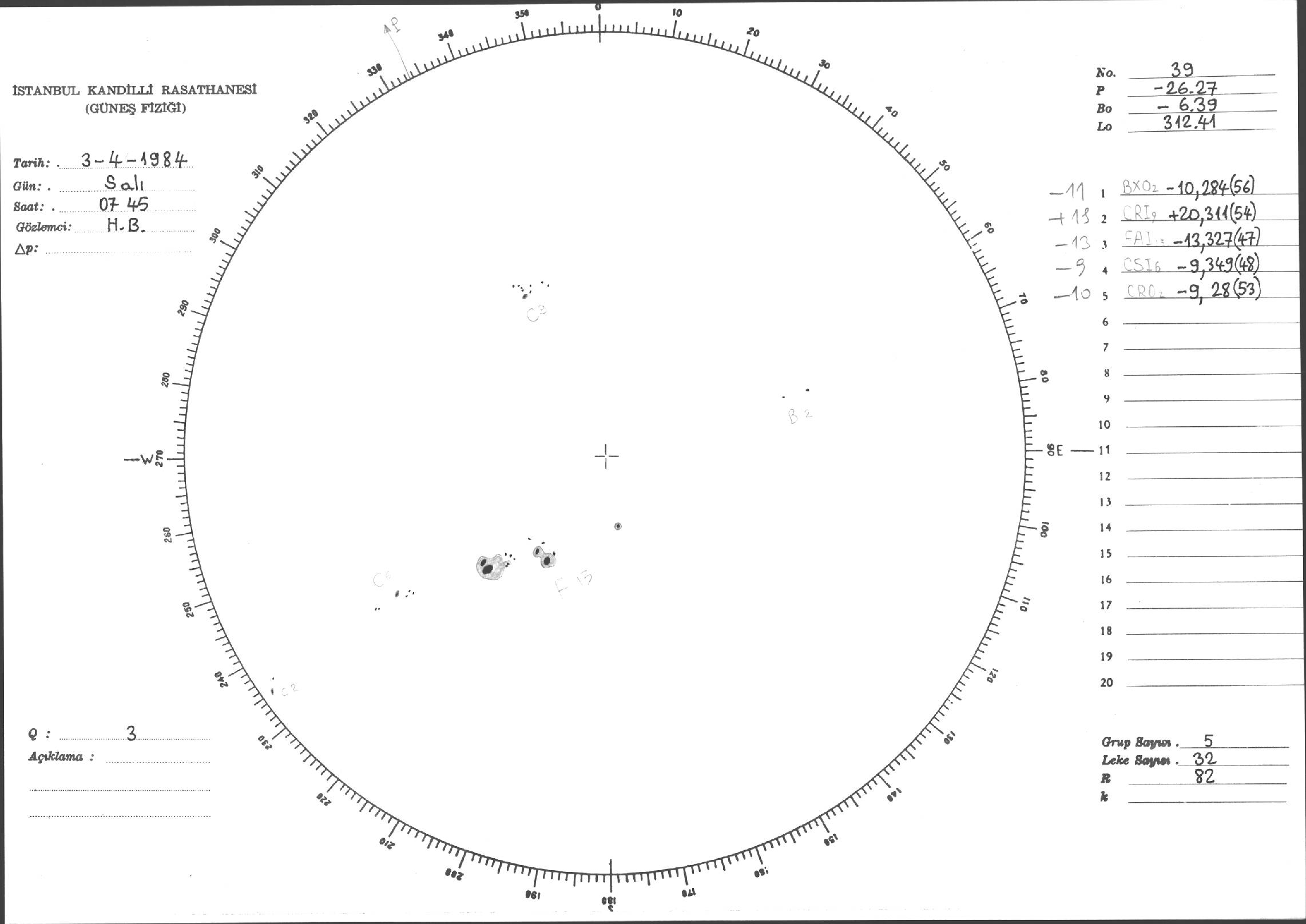 Güneş Lekesi Çizimi - 03.04.1984