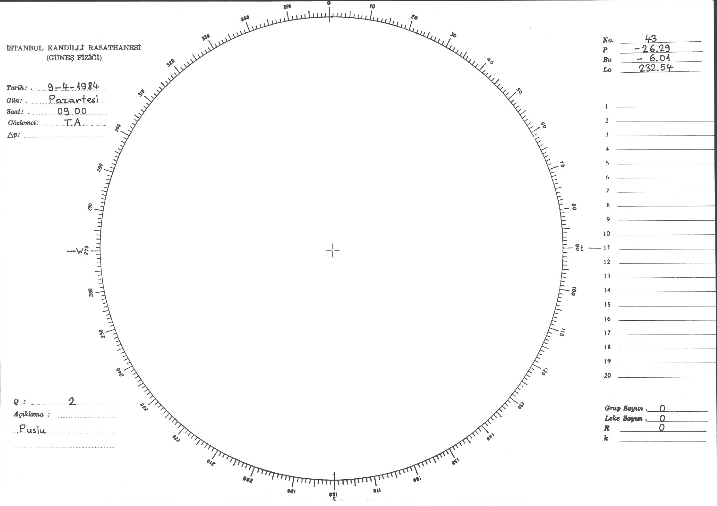 Güneş Lekesi Çizimi - 09.04.1984