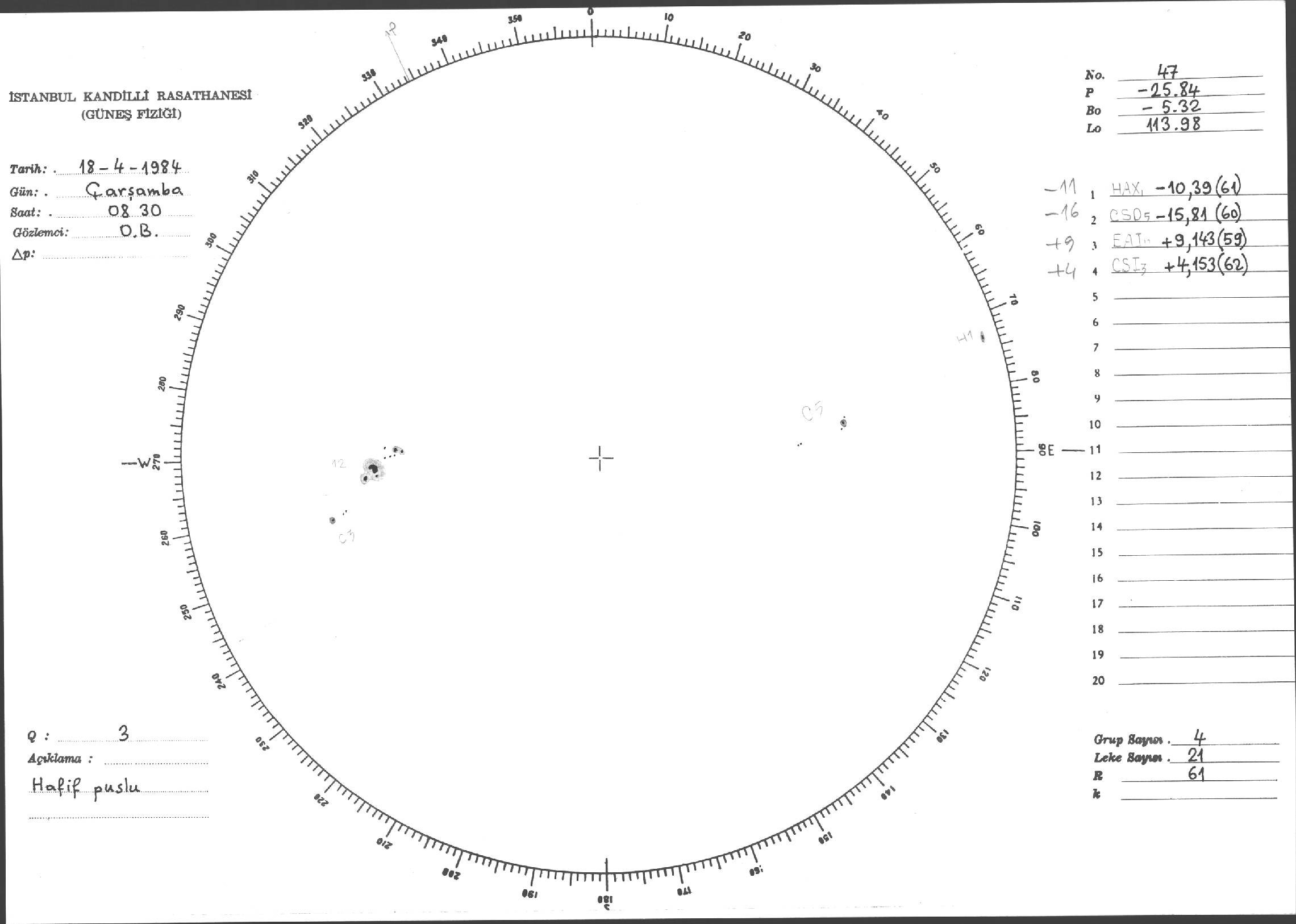 Güneş Lekesi Çizimi - 18.04.1984