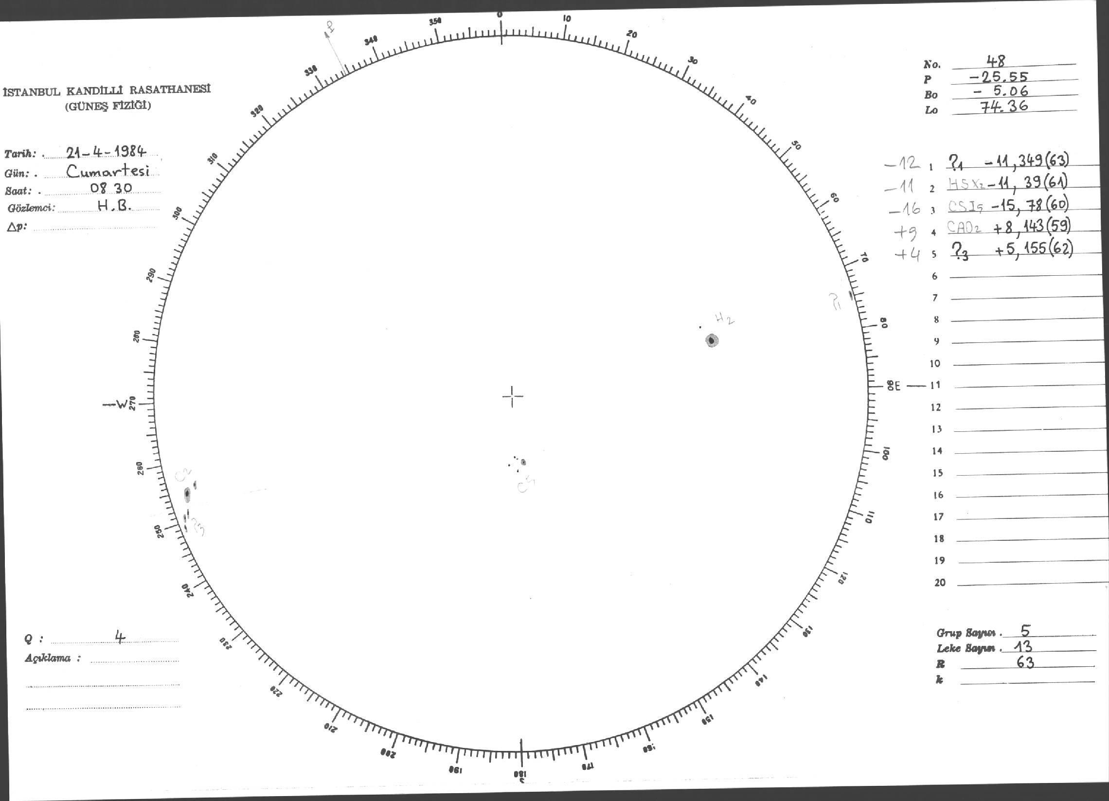 Güneş Lekesi Çizimi - 21.04.1984