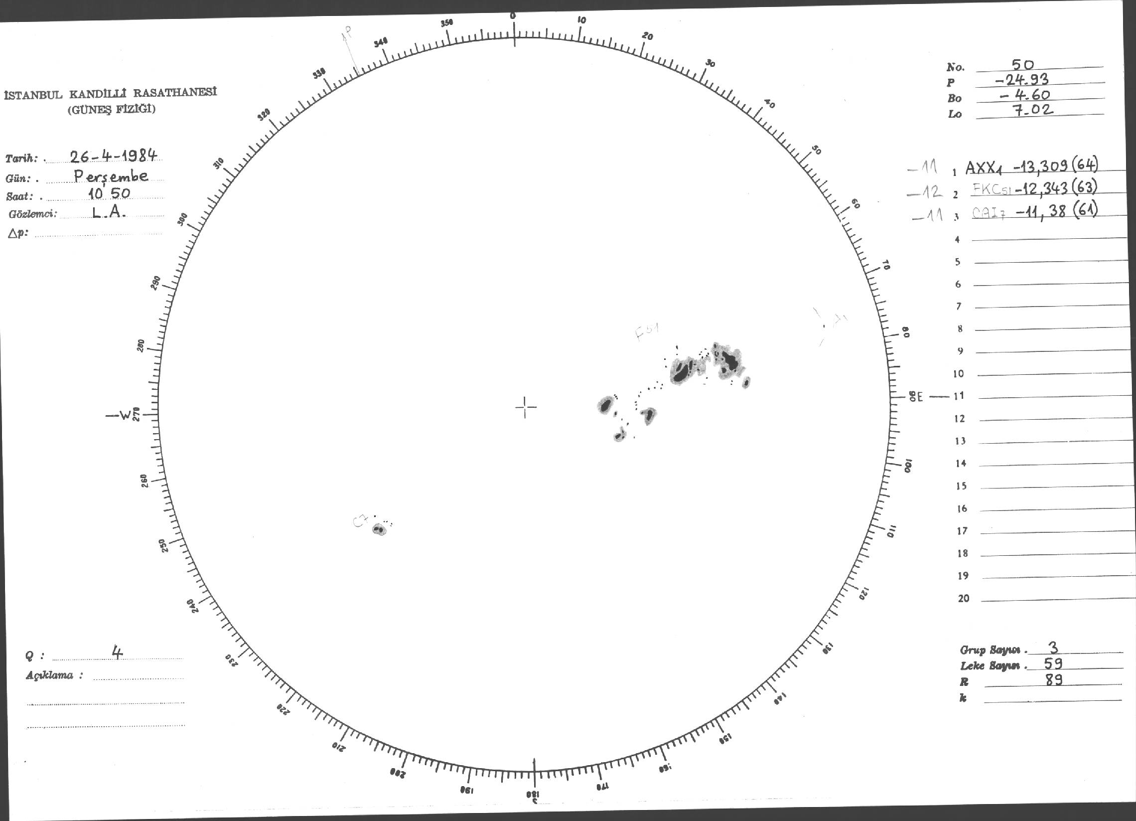 Güneş Lekesi Çizimi - 26.04.1984