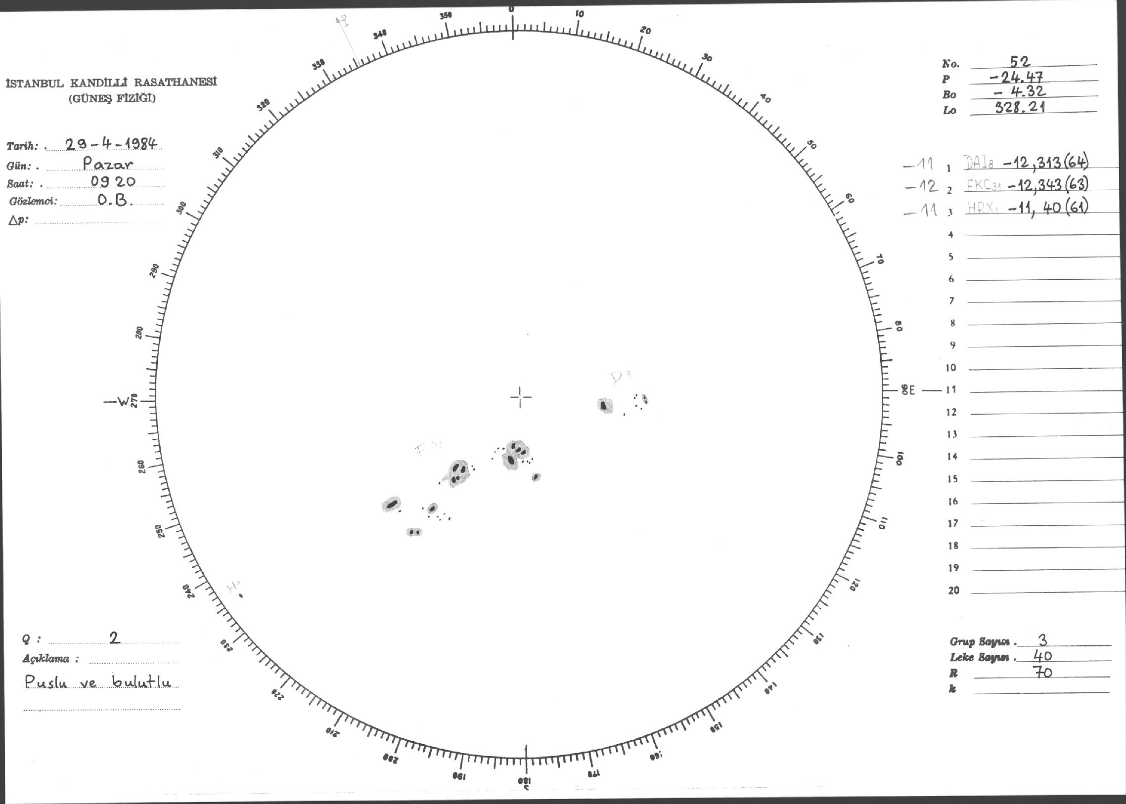 Güneş Lekesi Çizimi - 29.04.1984