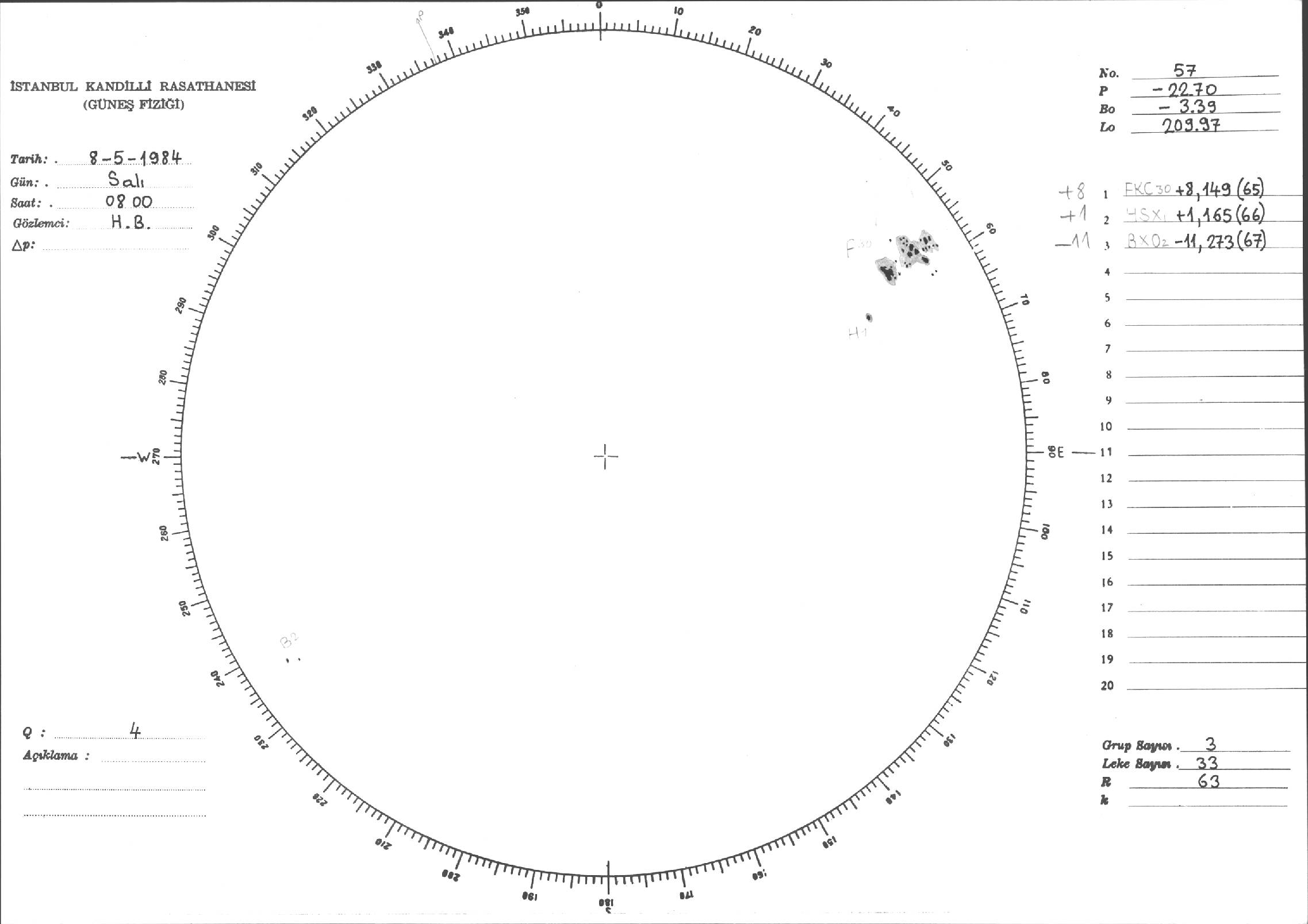 Güneş Lekesi Çizimi - 08.05.1984
