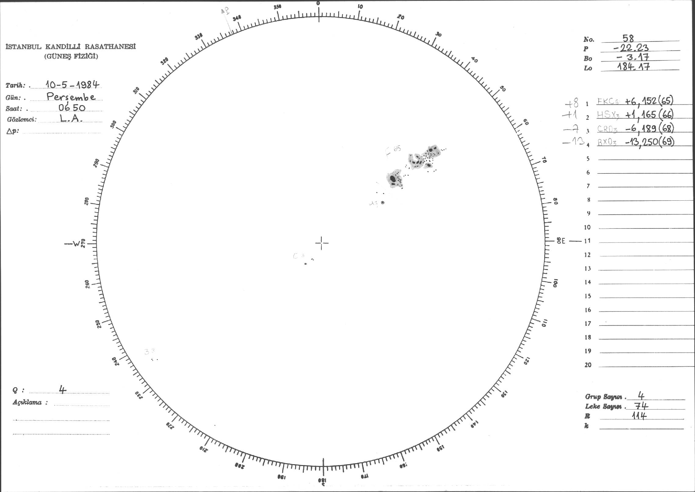 Güneş Lekesi Çizimi - 10.05.1984