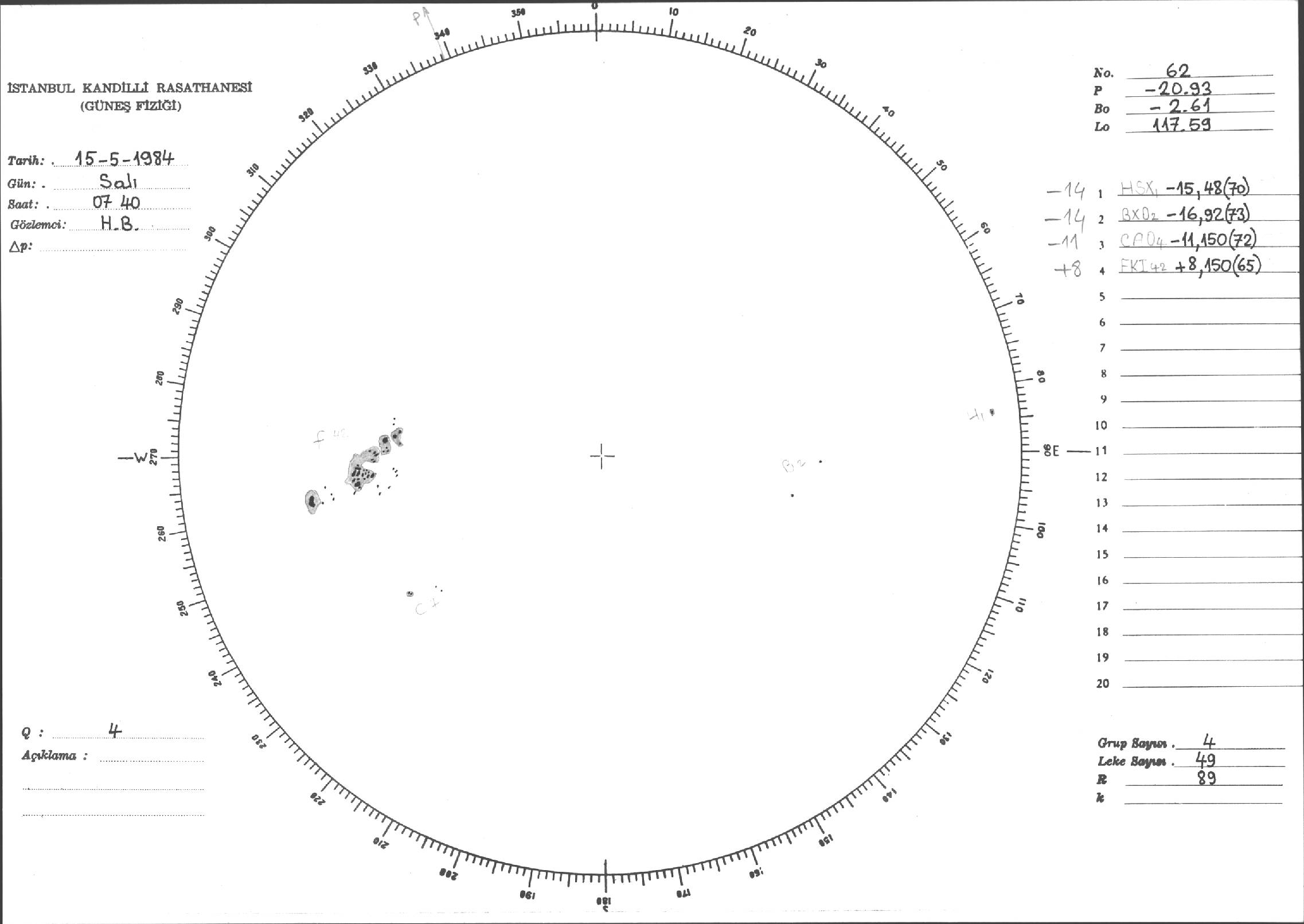 Güneş Lekesi Çizimi - 15.05.1984