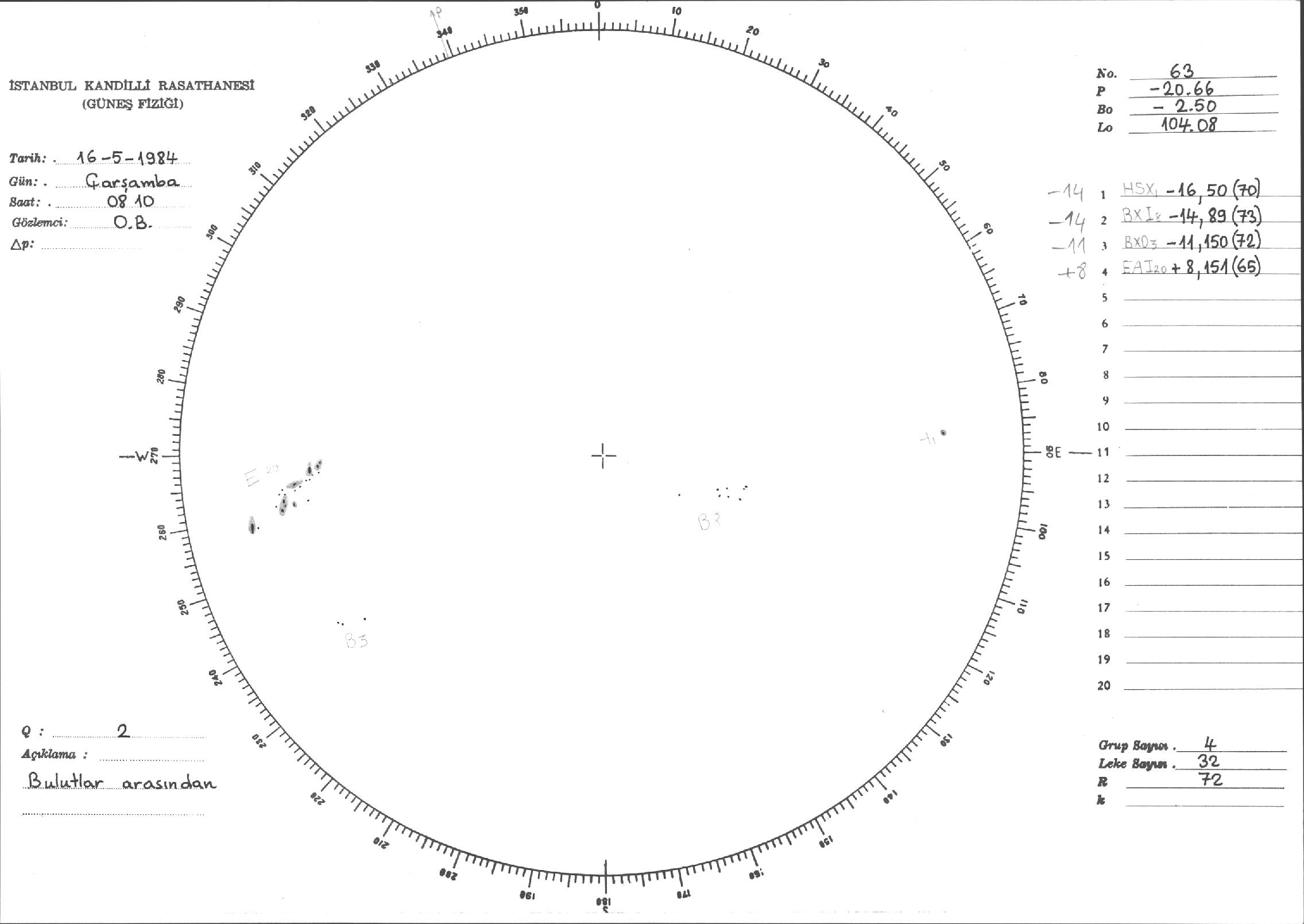 Güneş Lekesi Çizimi - 16.05.1984