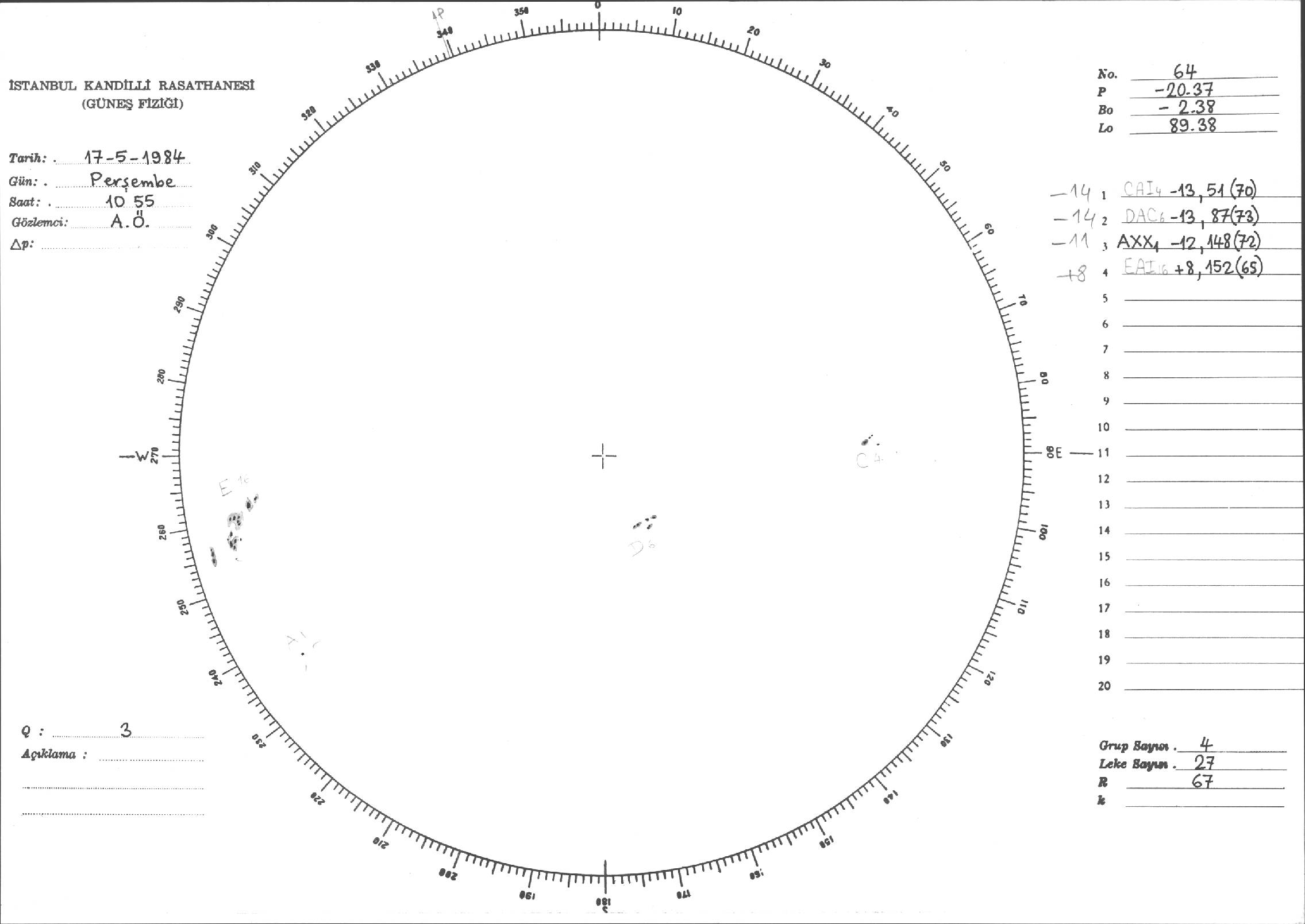 Güneş Lekesi Çizimi - 17.05.1984