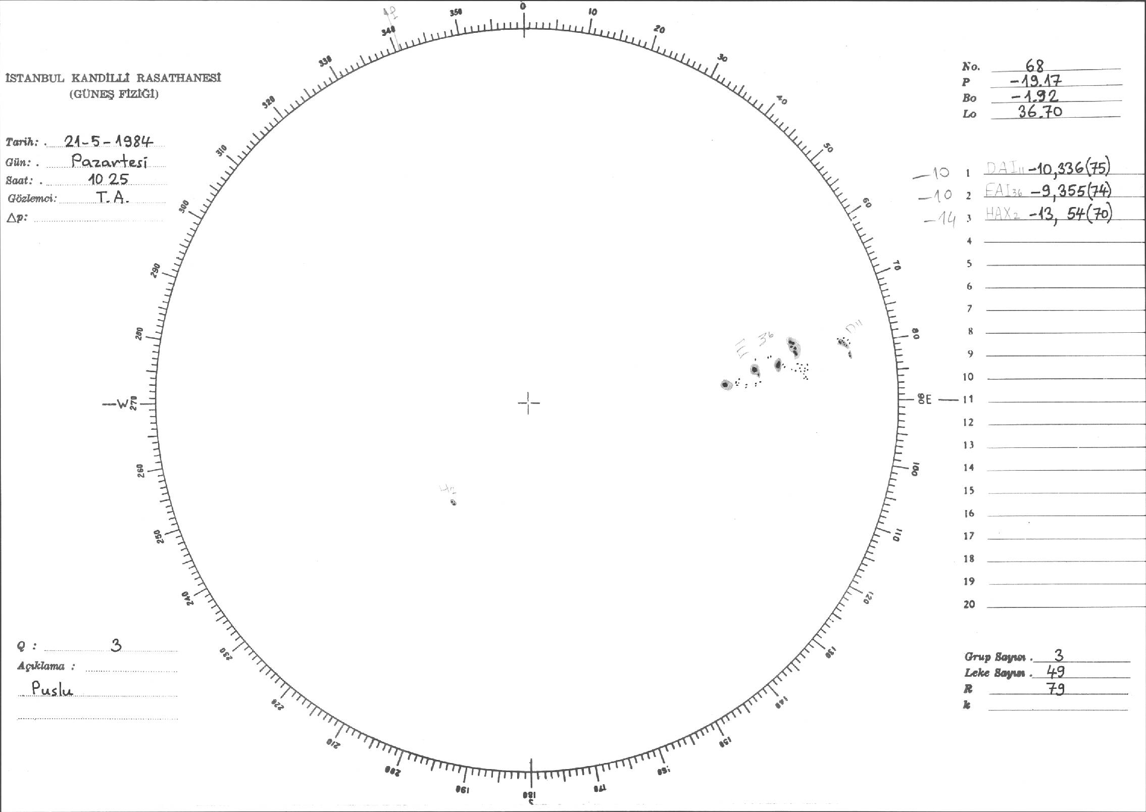 Güneş Lekesi Çizimi - 21.05.1984