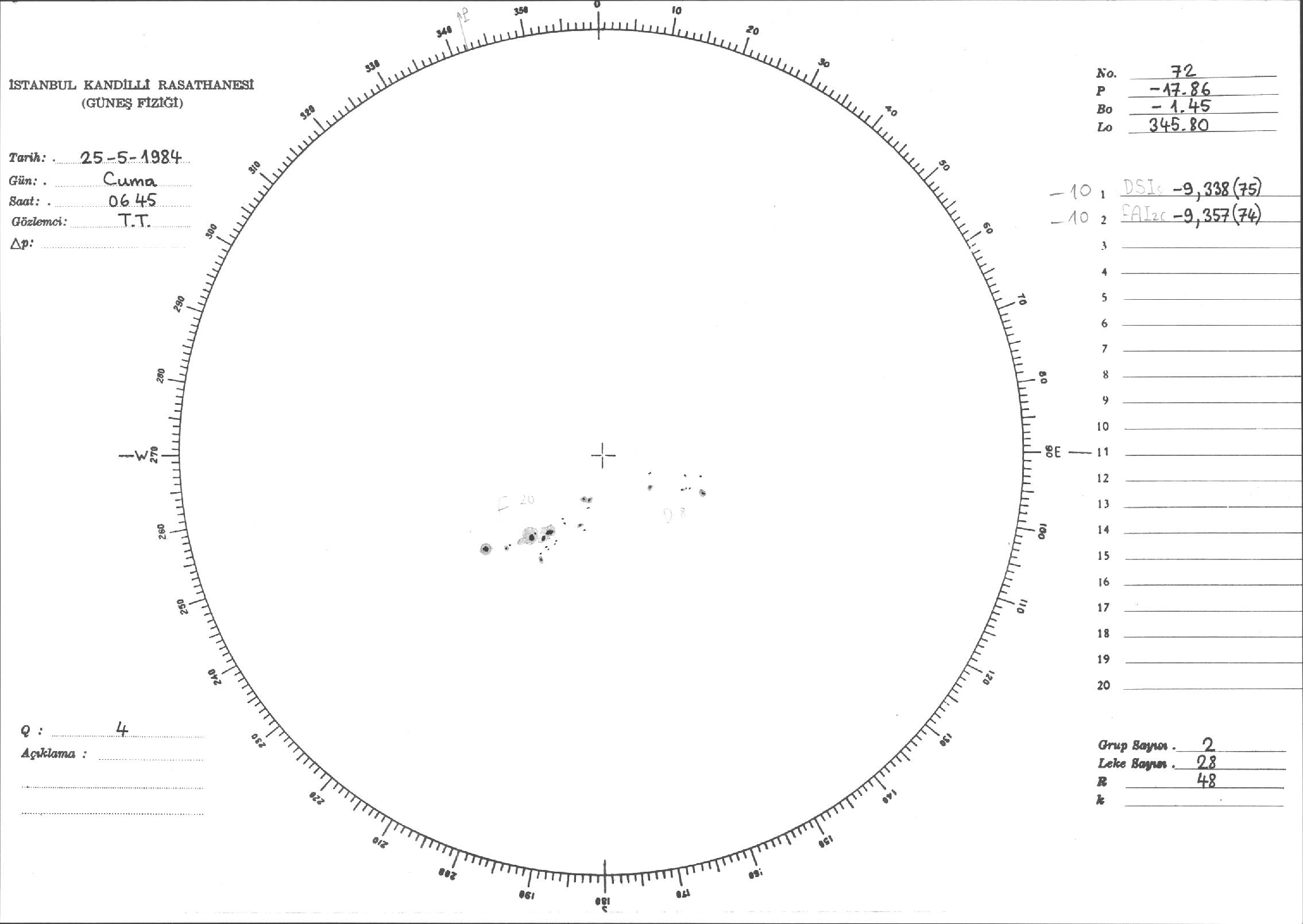 Güneş Lekesi Çizimi - 25.05.1984