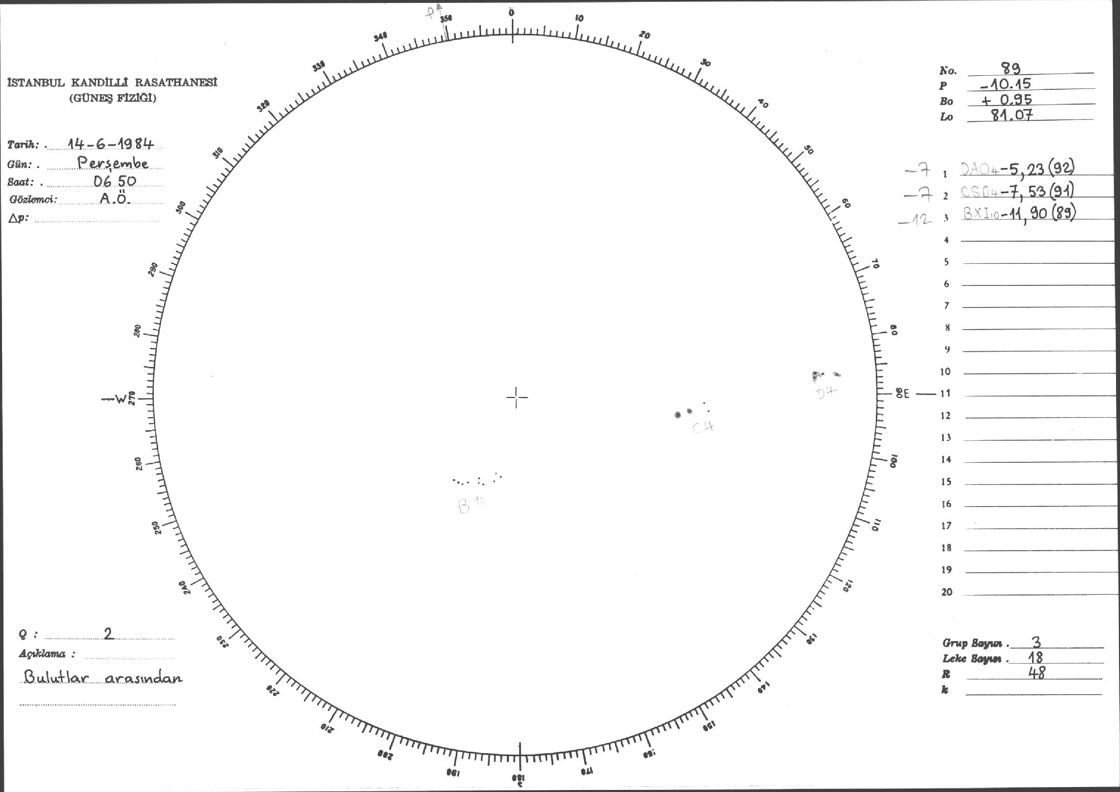 Güneş Lekesi Çizimi - 14.06.1984
