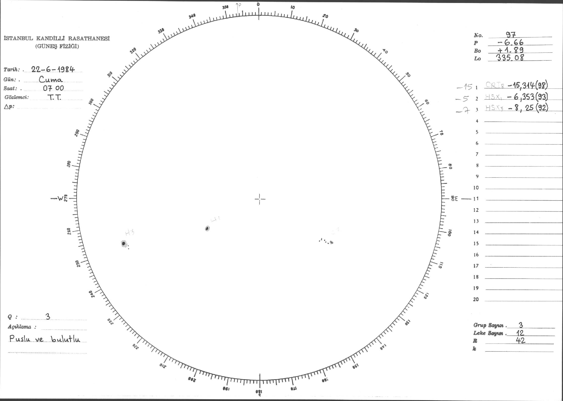 Güneş Lekesi Çizimi - 22.06.1984