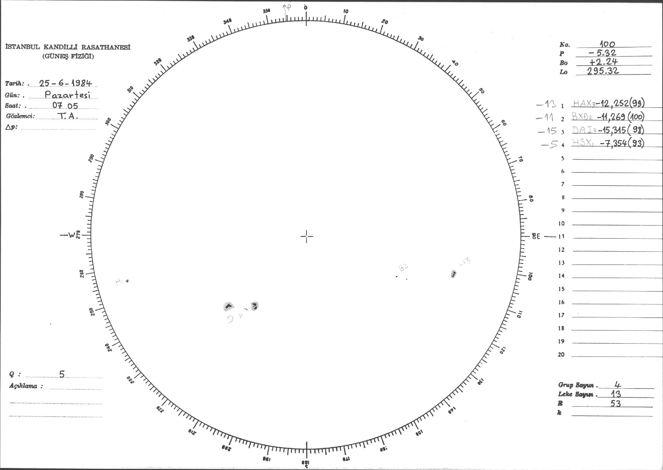 Güneş Lekesi Çizimi - 25.06.1984
