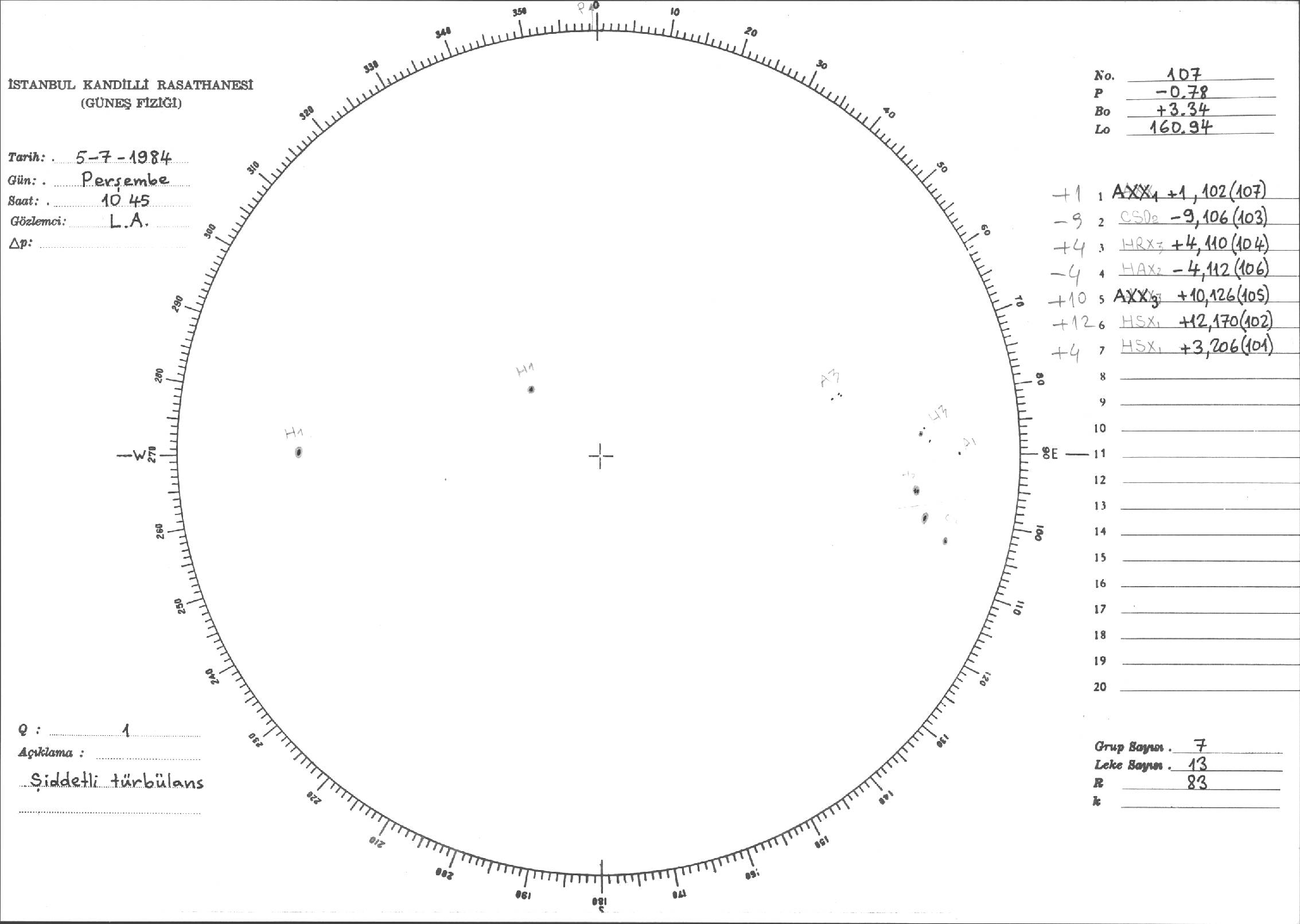 Güneş Lekesi Çizimi - 05.07.1984