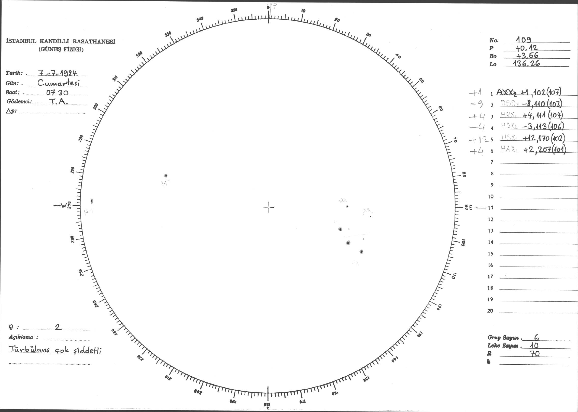 Güneş Lekesi Çizimi - 07.07.1984