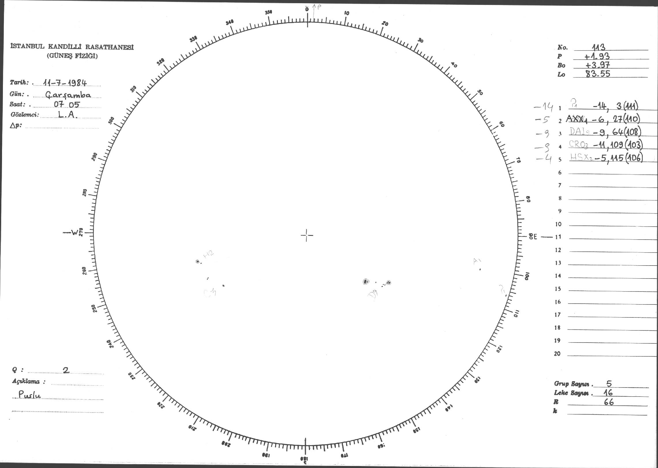 Güneş Lekesi Çizimi - 11.07.1984