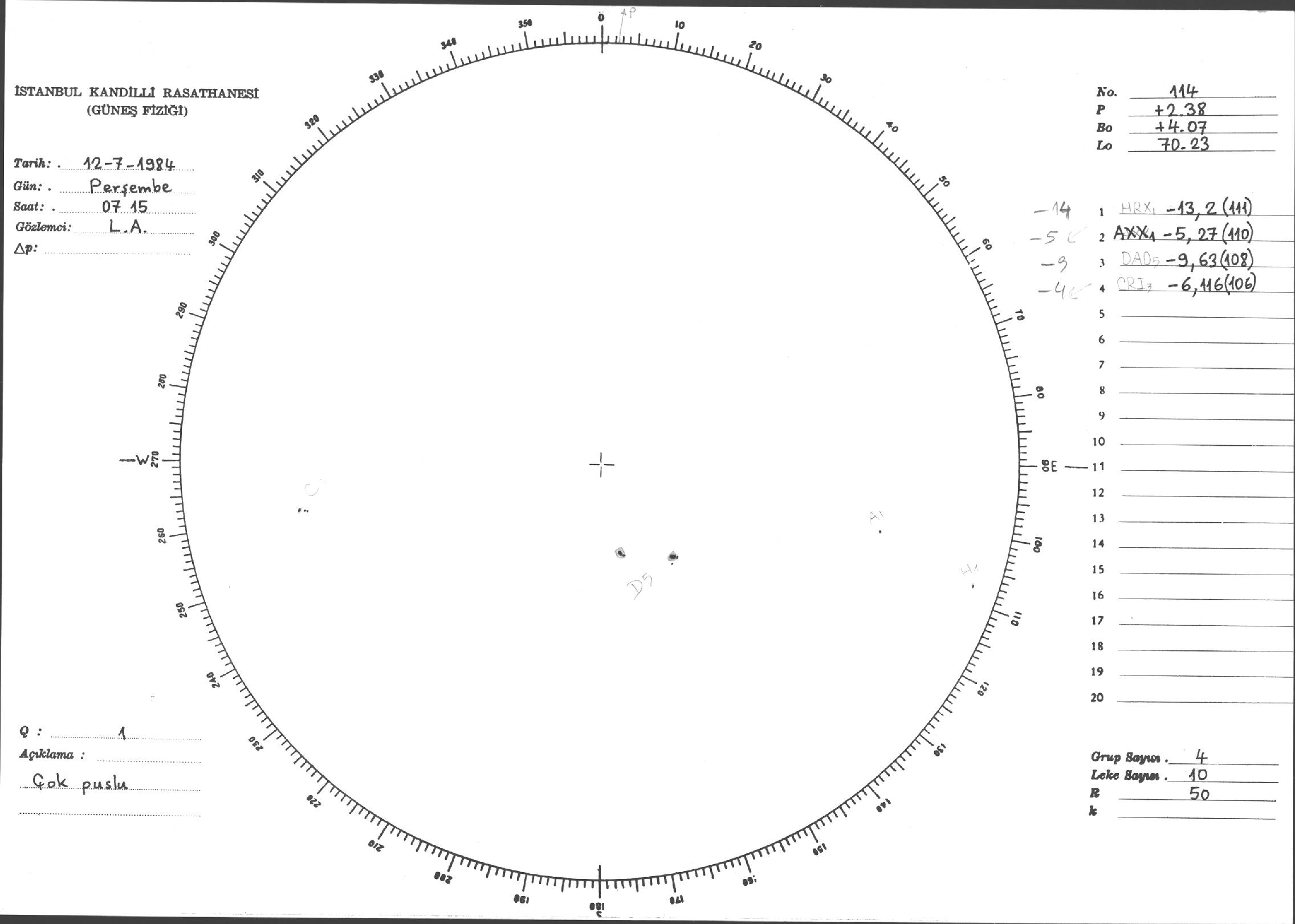 Güneş Lekesi Çizimi - 12.07.1984