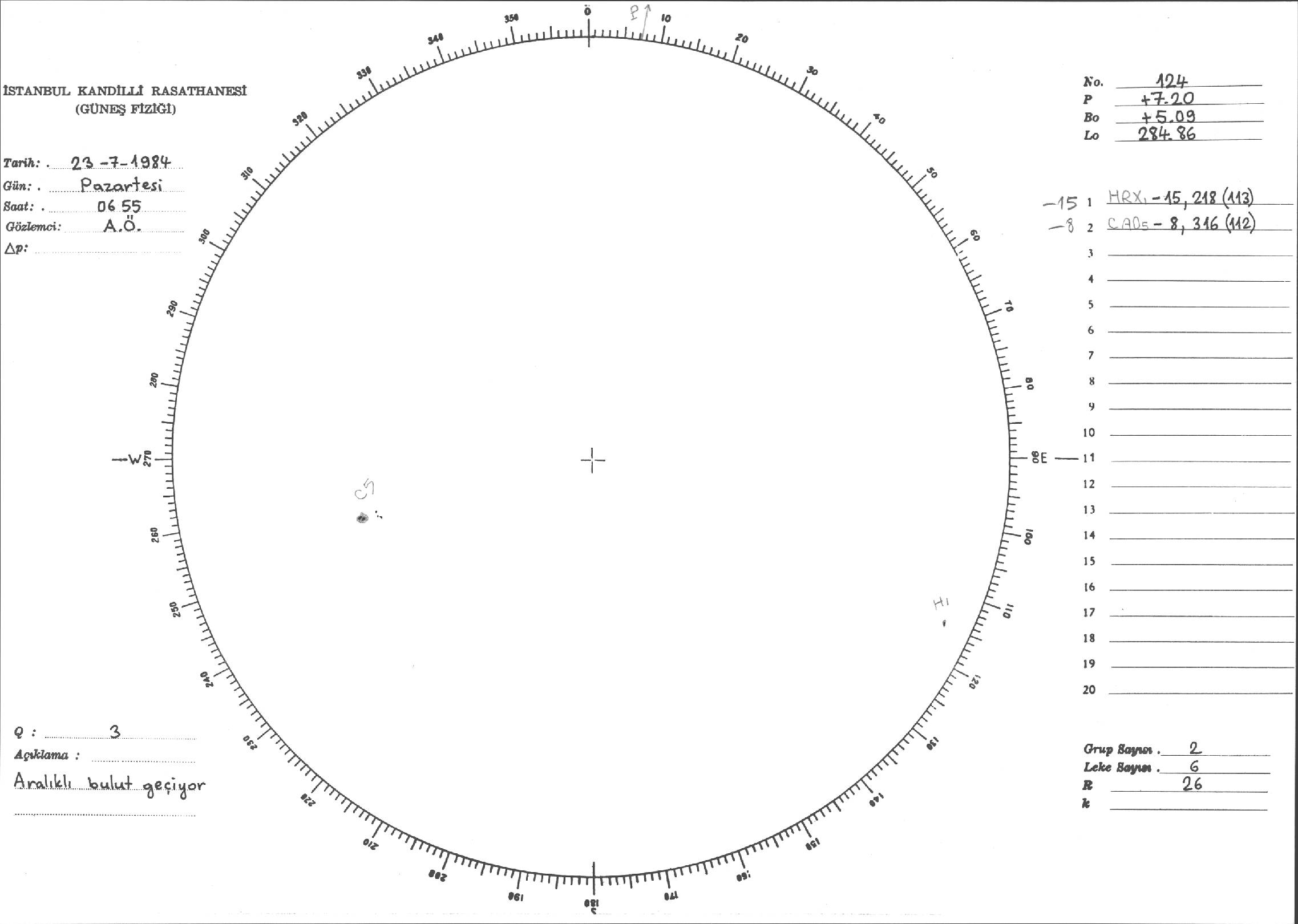 Güneş Lekesi Çizimi - 23.07.1984