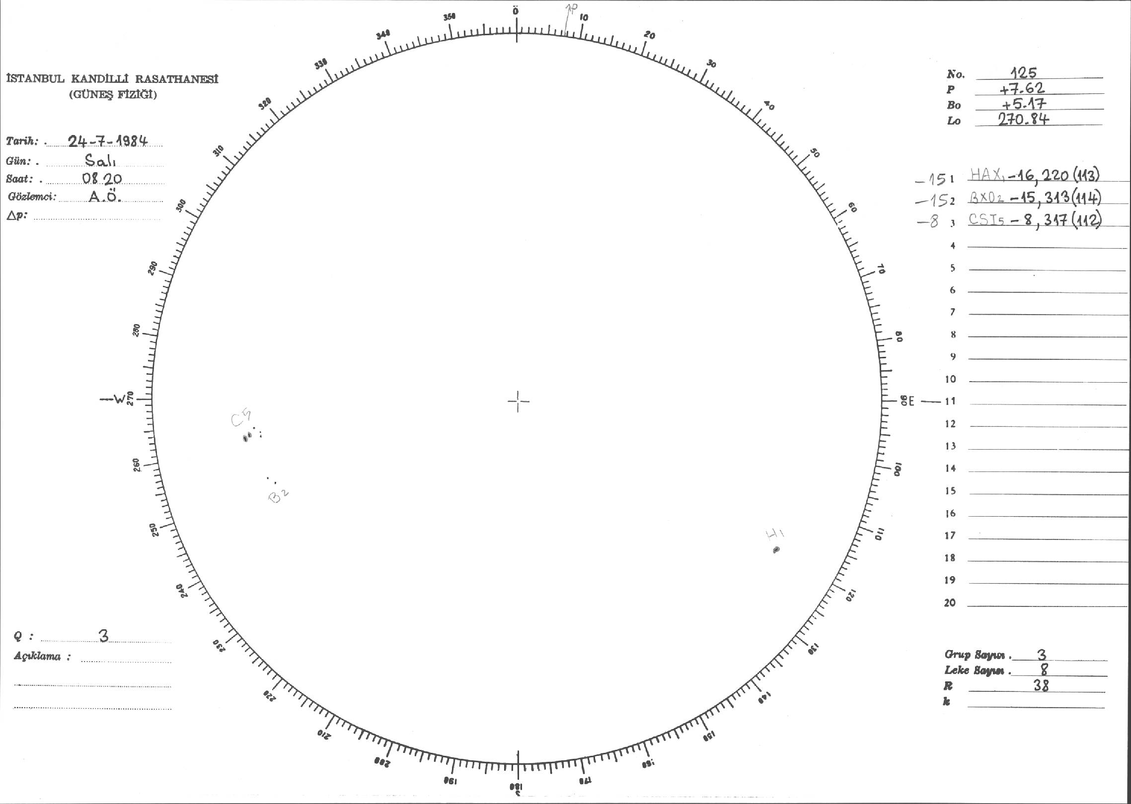 Güneş Lekesi Çizimi - 24.07.1984