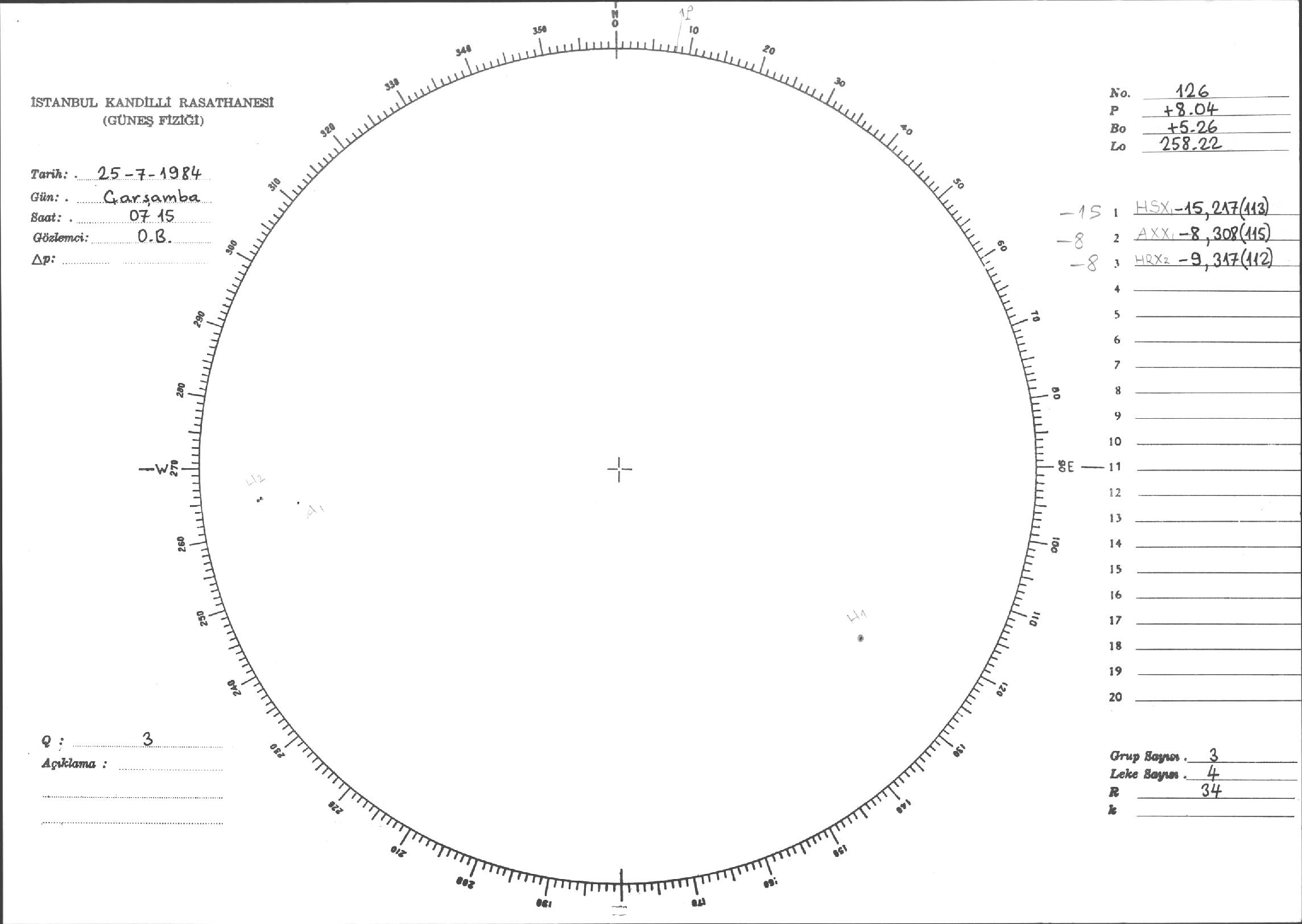 Güneş Lekesi Çizimi - 25.07.1984