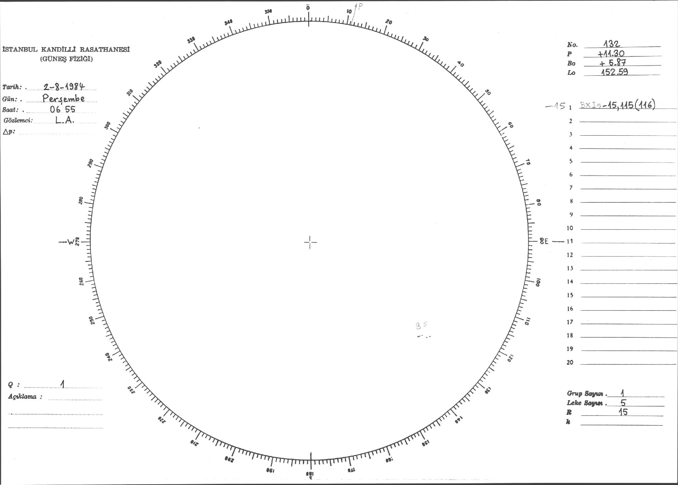Güneş Lekesi Çizimi - 02.08.1984