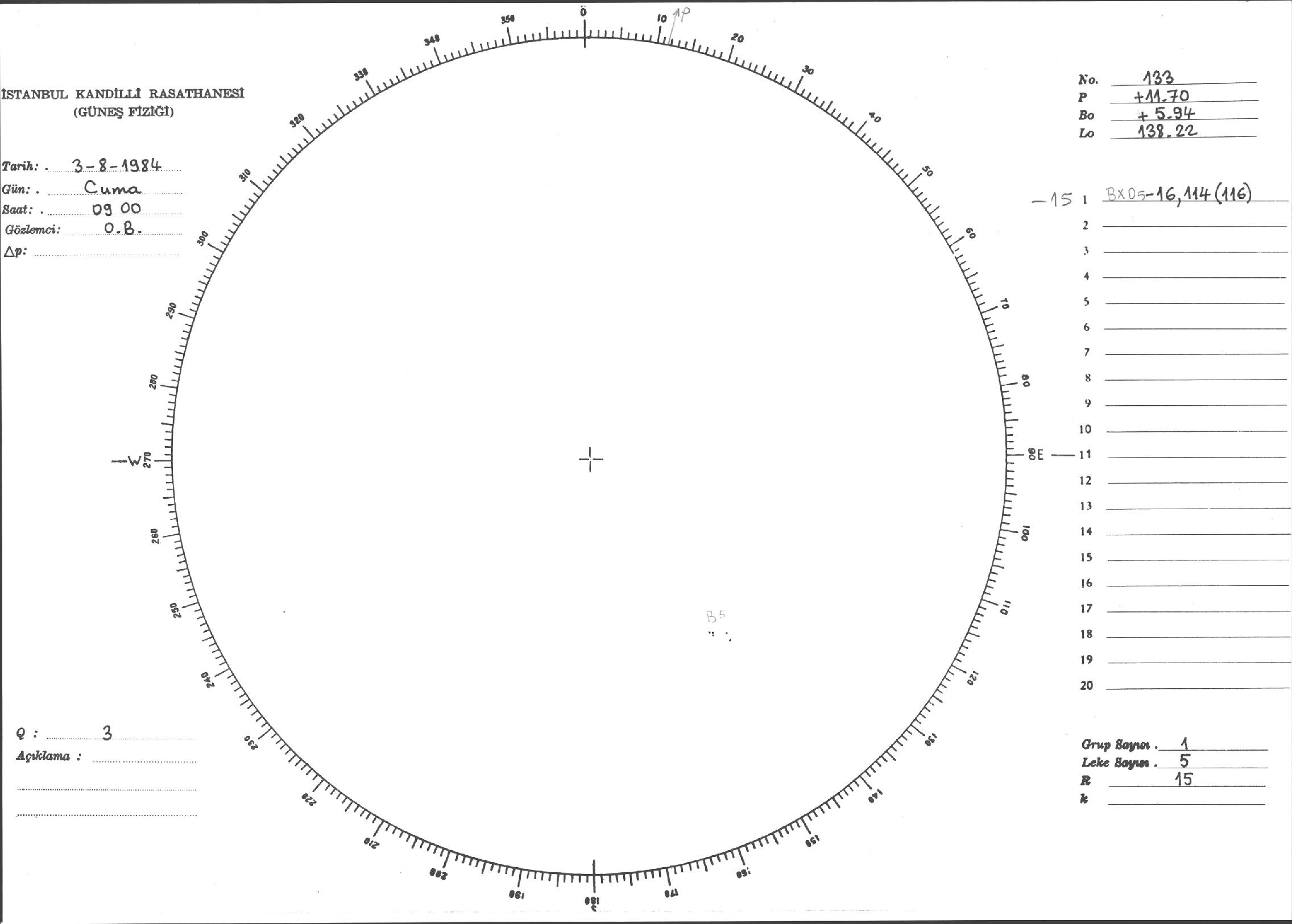Güneş Lekesi Çizimi - 03.08.1984