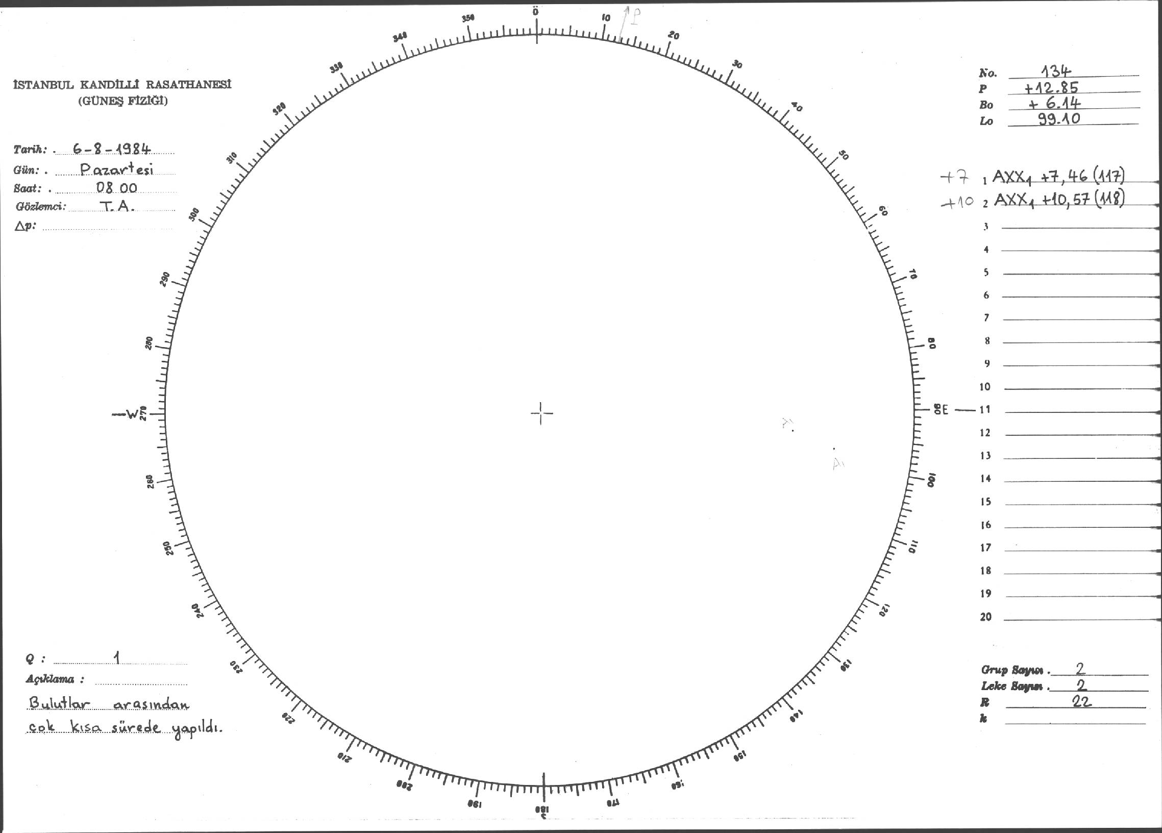 Güneş Lekesi Çizimi - 06.08.1984
