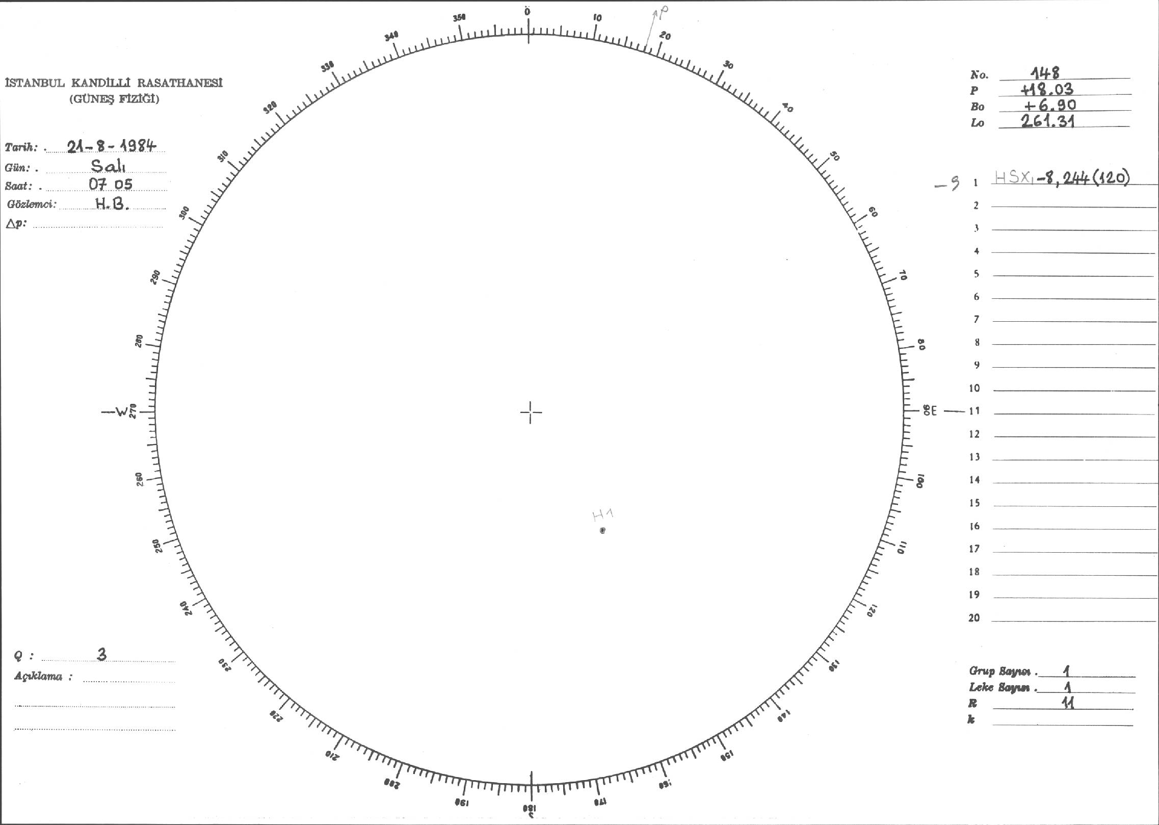 Güneş Lekesi Çizimi - 21.08.1984