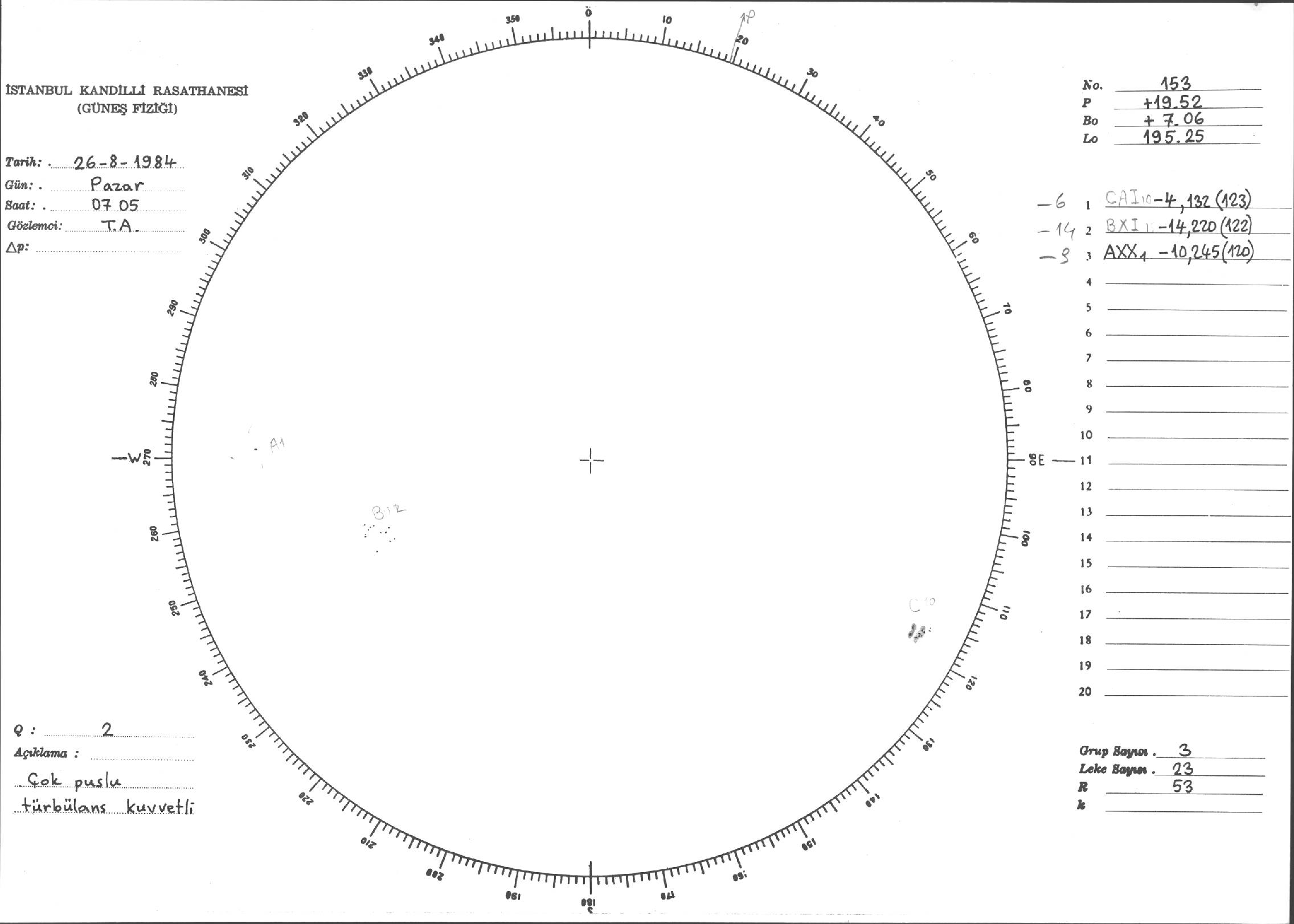 Güneş Lekesi Çizimi - 26.08.1984