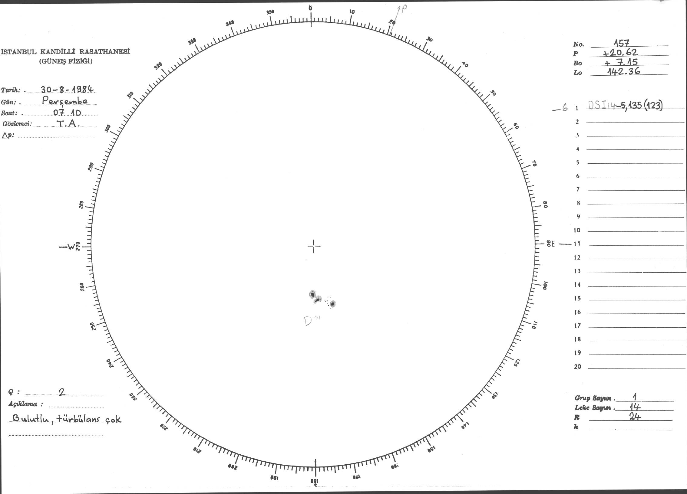 Güneş Lekesi Çizimi - 30.08.1984