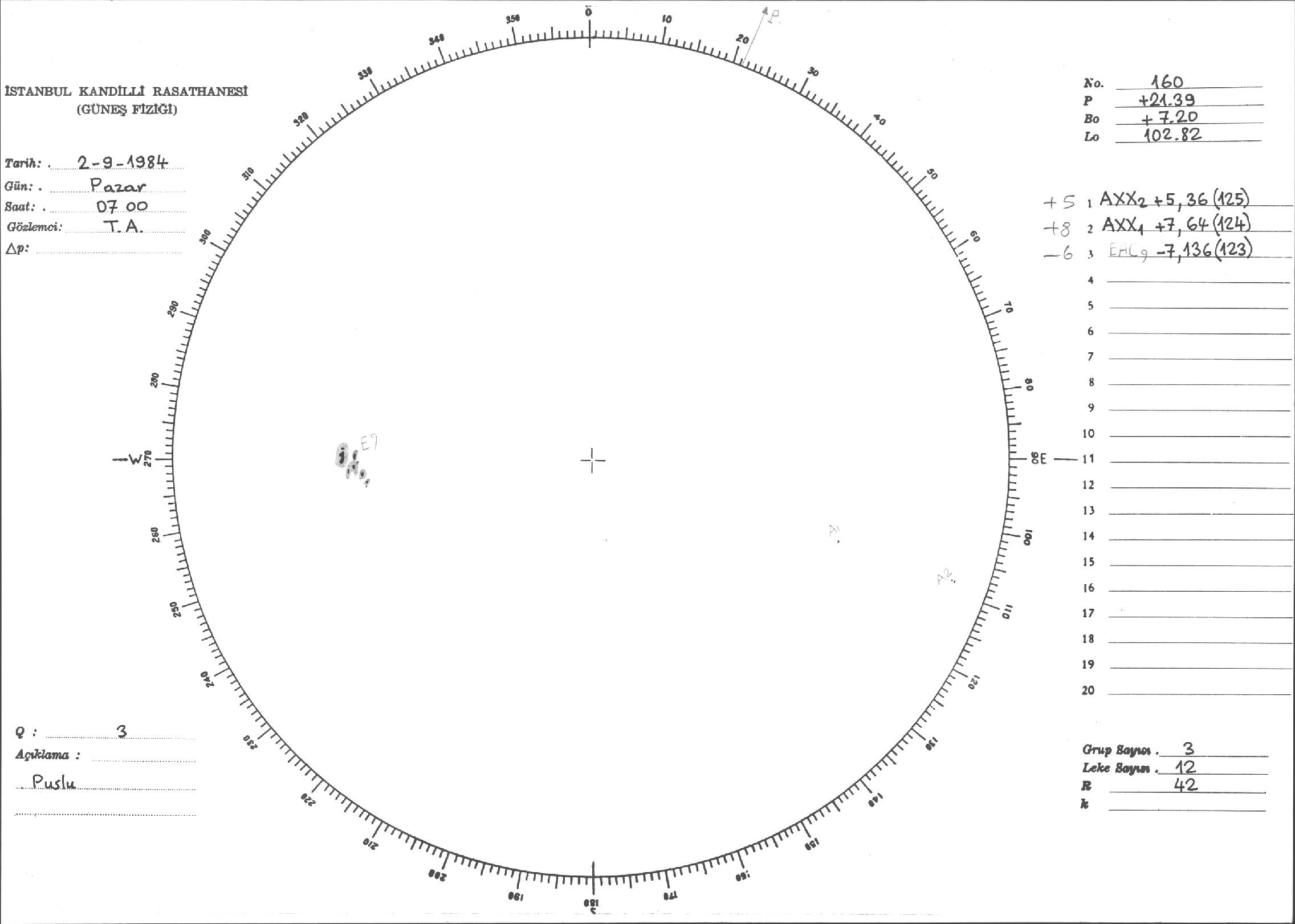 Güneş Lekesi Çizimi - 02.09.1984