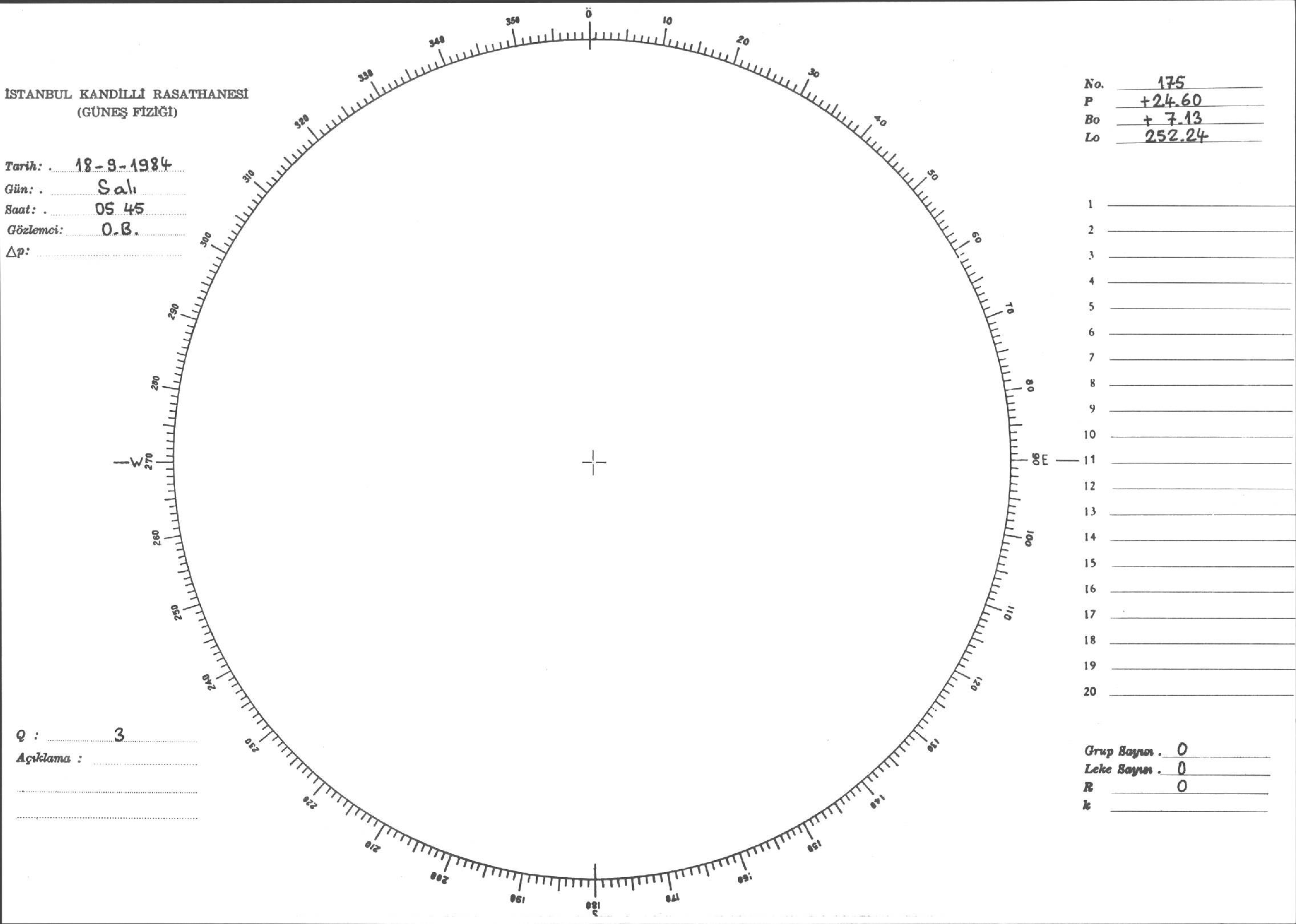Güneş Lekesi Çizimi - 18.09.1984