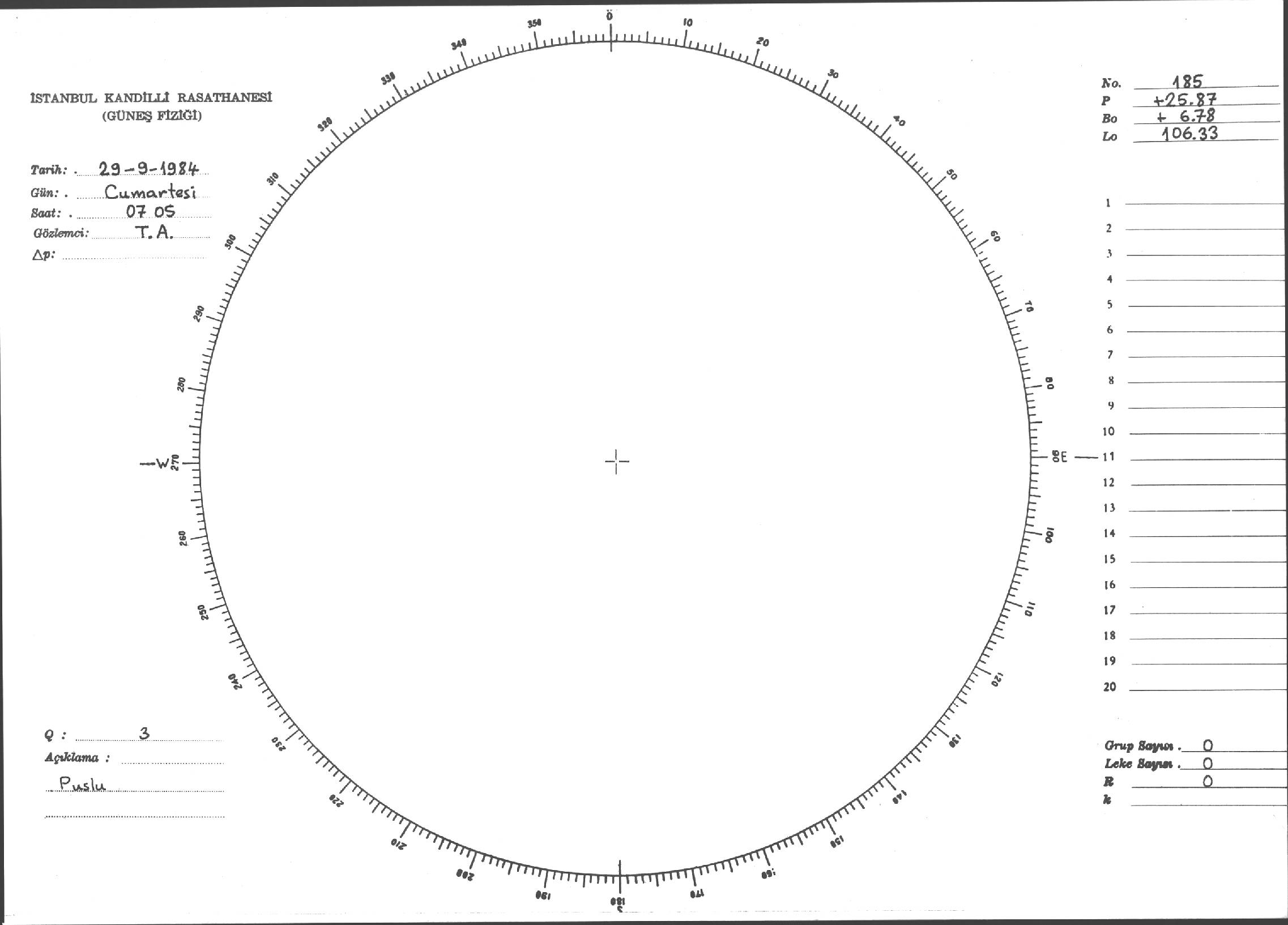 Güneş Lekesi Çizimi - 29.09.1984