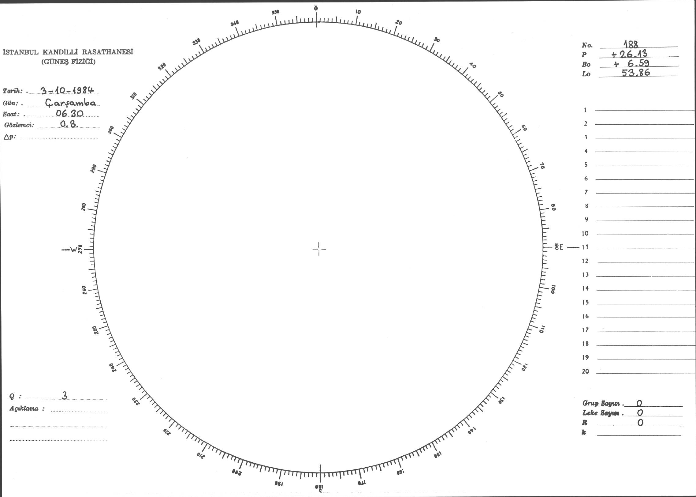 Güneş Lekesi Çizimi - 03.10.1984