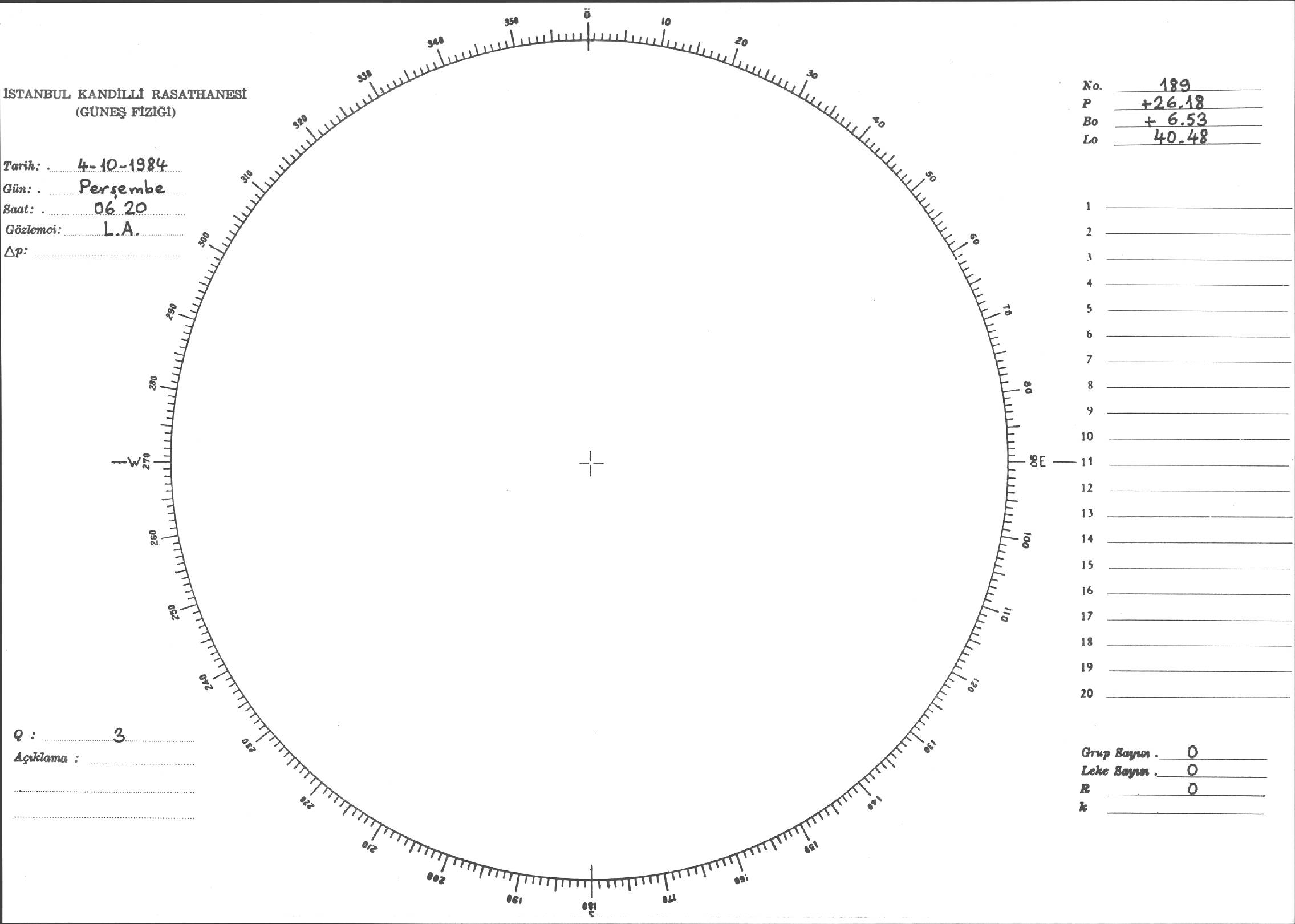 Güneş Lekesi Çizimi - 04.10.1984