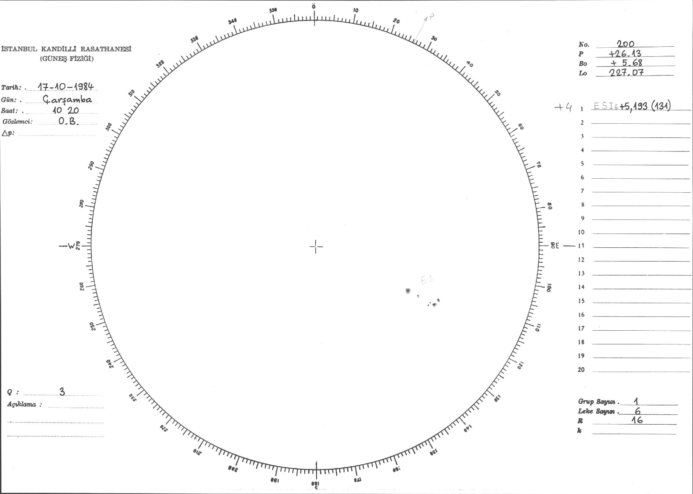 Güneş Lekesi Çizimi - 17.10.1984