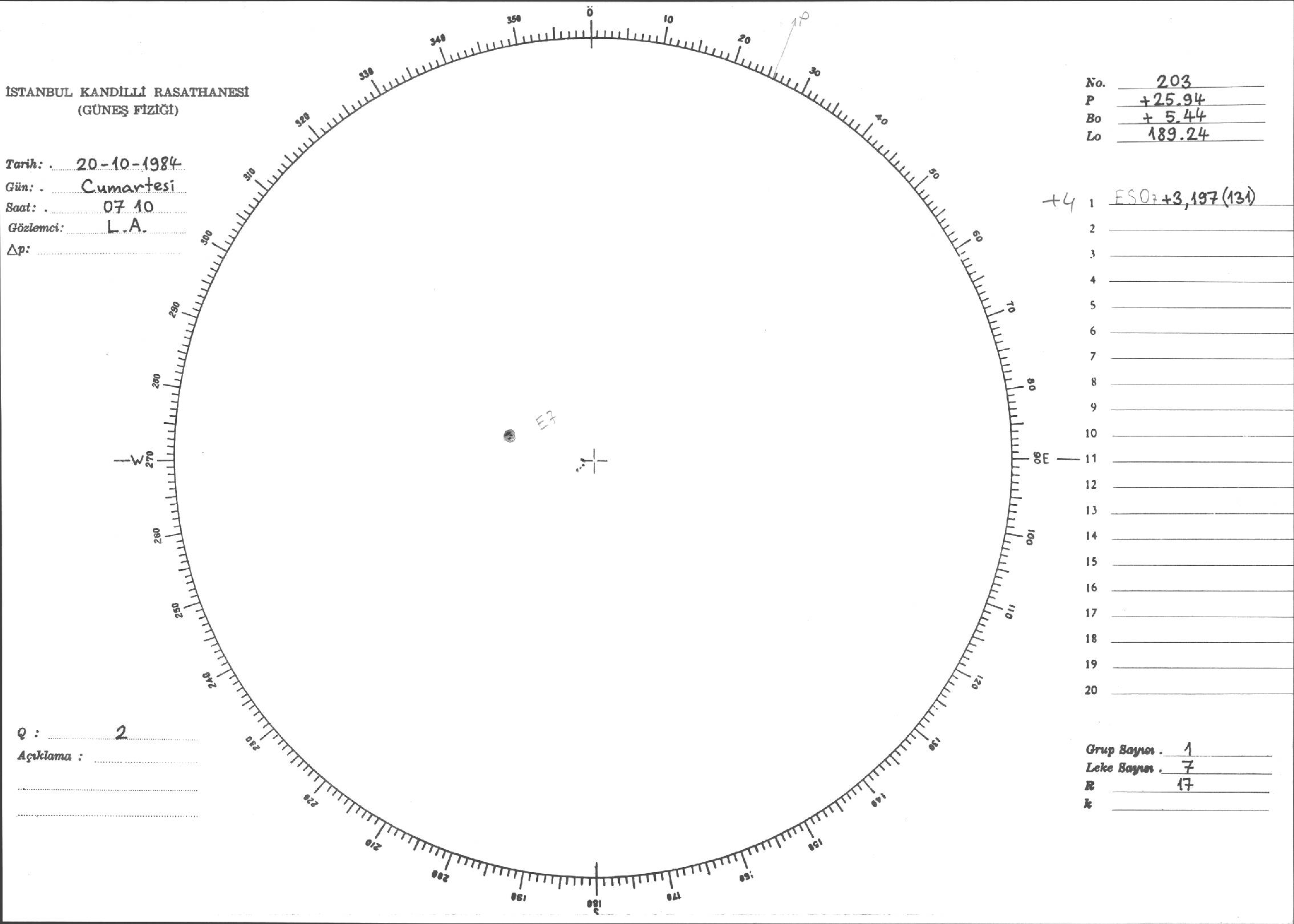 Güneş Lekesi Çizimi - 20.10.1984
