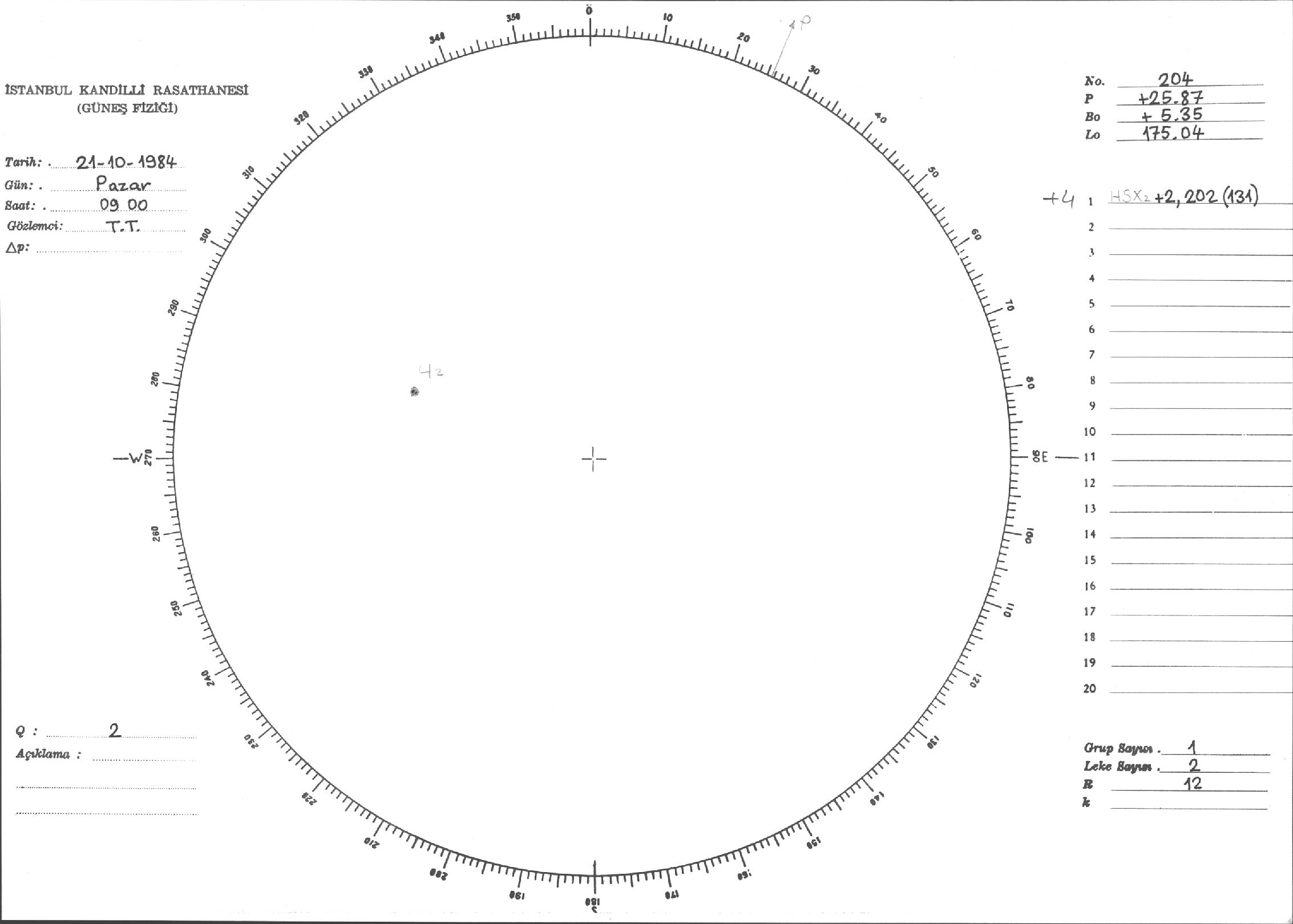 Güneş Lekesi Çizimi - 21.10.1984