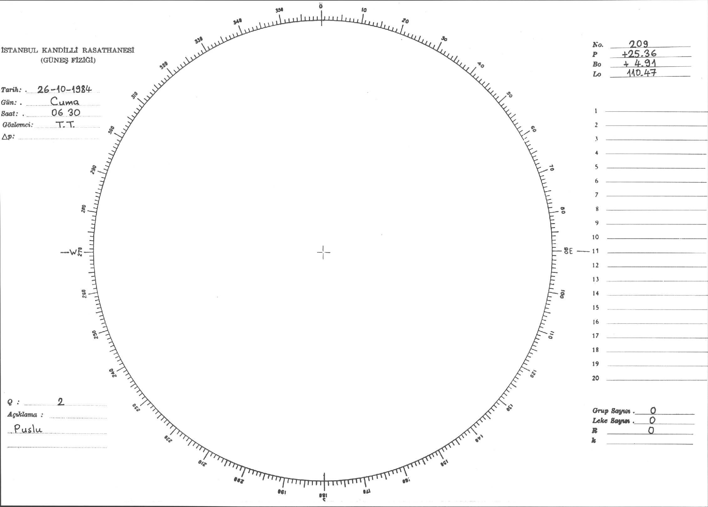 Güneş Lekesi Çizimi - 26.10.1984