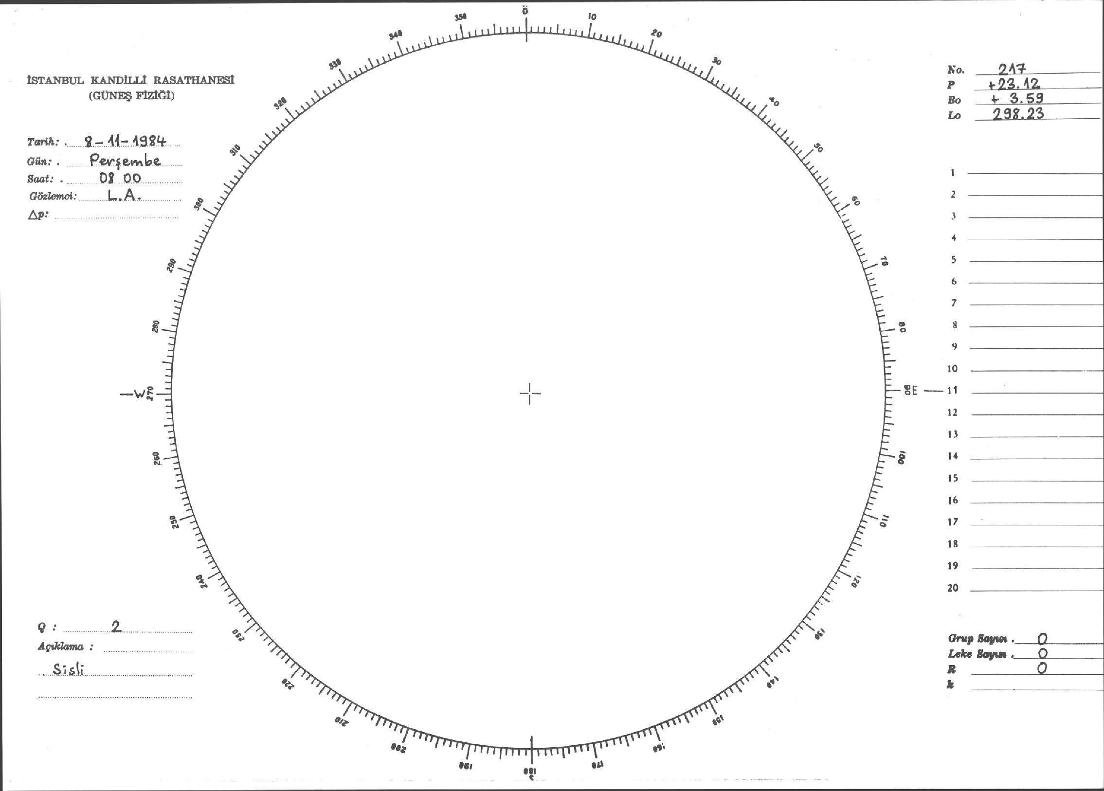 Güneş Lekesi Çizimi - 08.11.1984