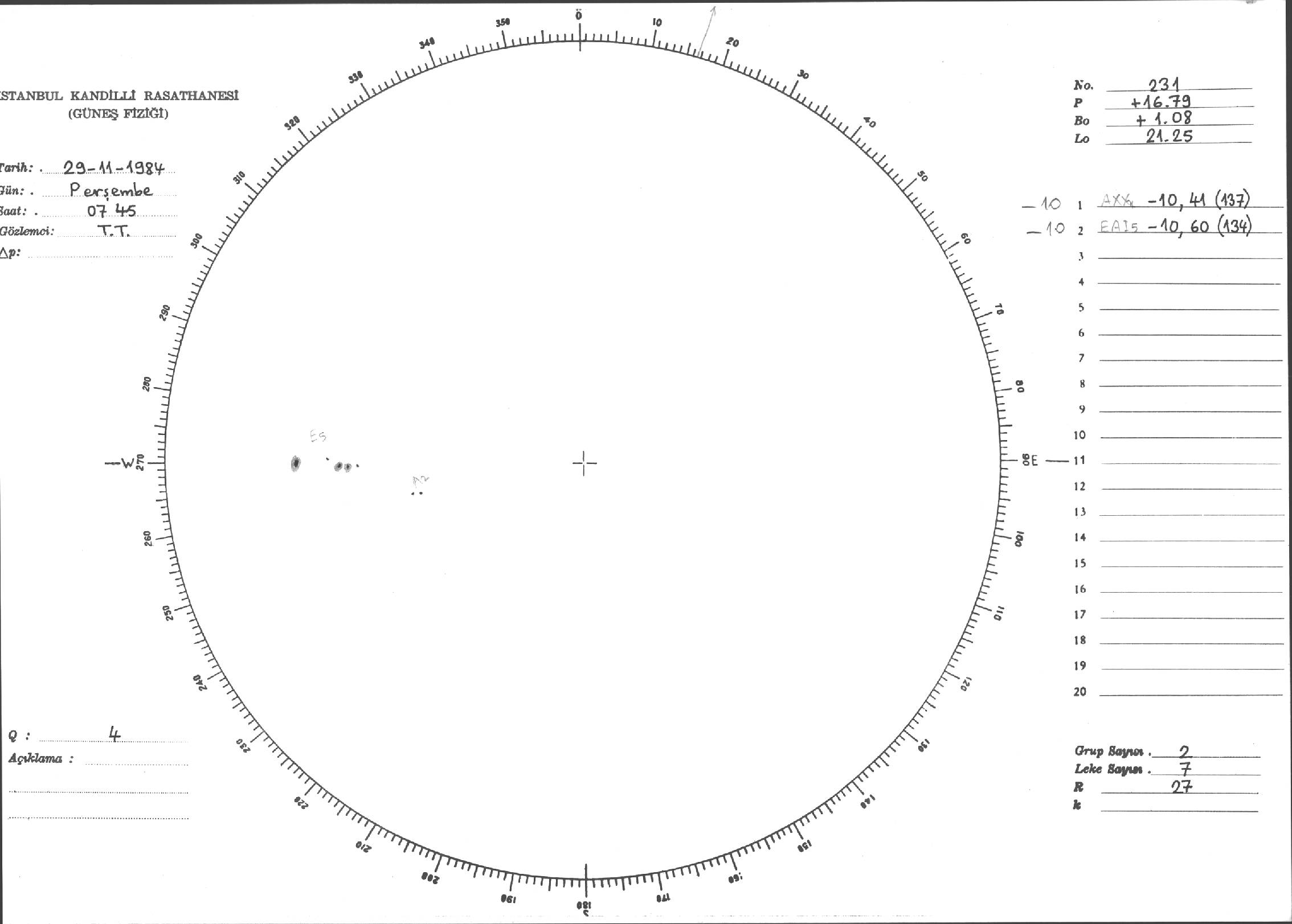 Güneş Lekesi Çizimi - 29.11.1984